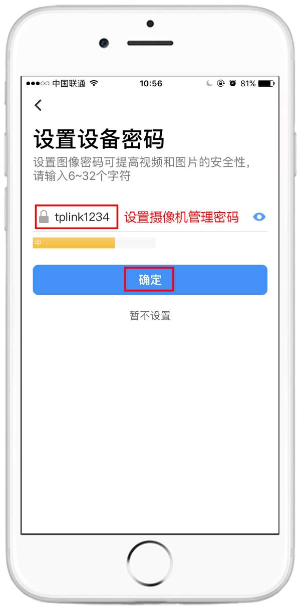 4.按照语音提示设置摄像机管理密码,以后通过网页管理摄像机、预览和回放监控画面都需要输入这个密码。建议不要设置为123456、111111等类似的弱密码,建议设置为有一定复杂程度的密码,例如字母和数字的组合,如下图: