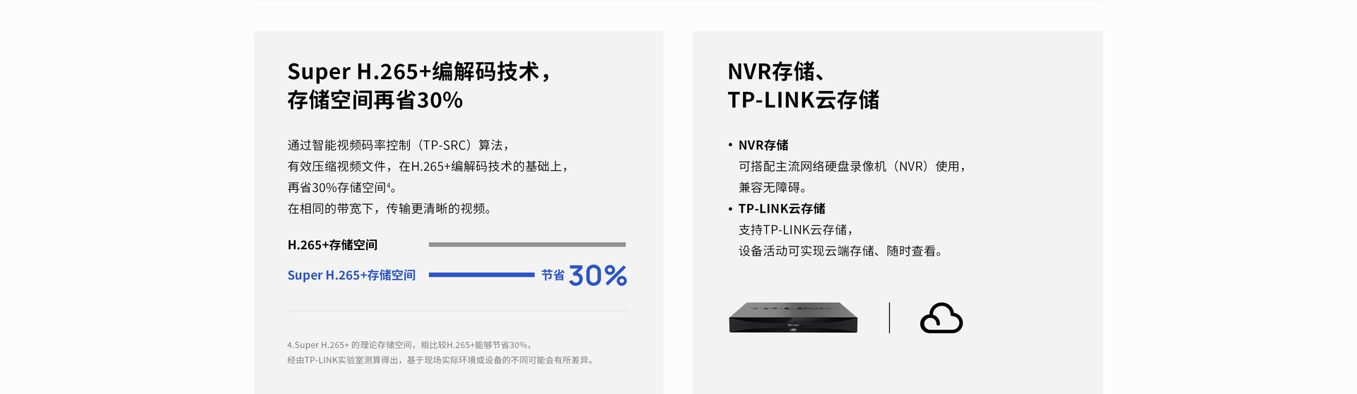 支持TP-SRC码控算法(Super H.265+),在智能编码基础上可再节省30%存储空间