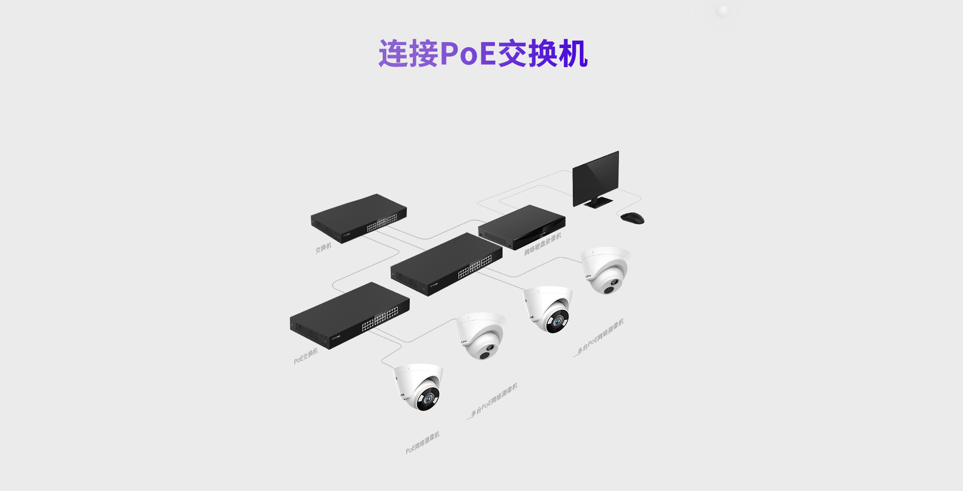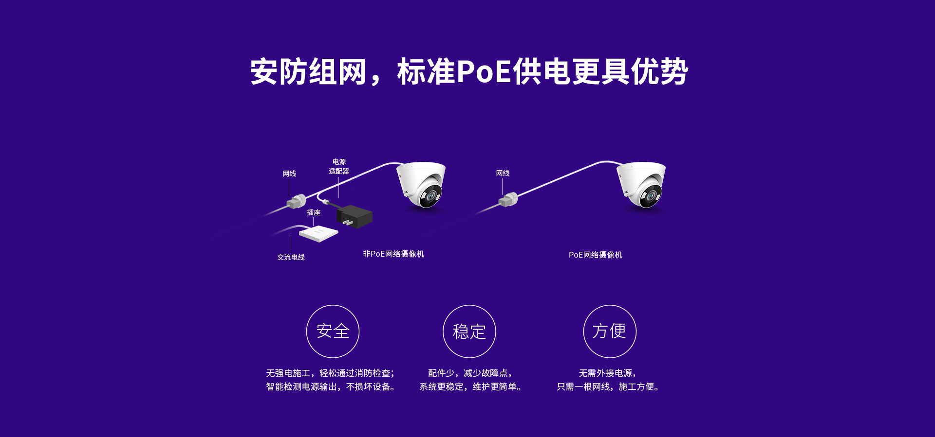 支持IEEE 802.3af/at 标准PoE供电,稳定安全,施工方便