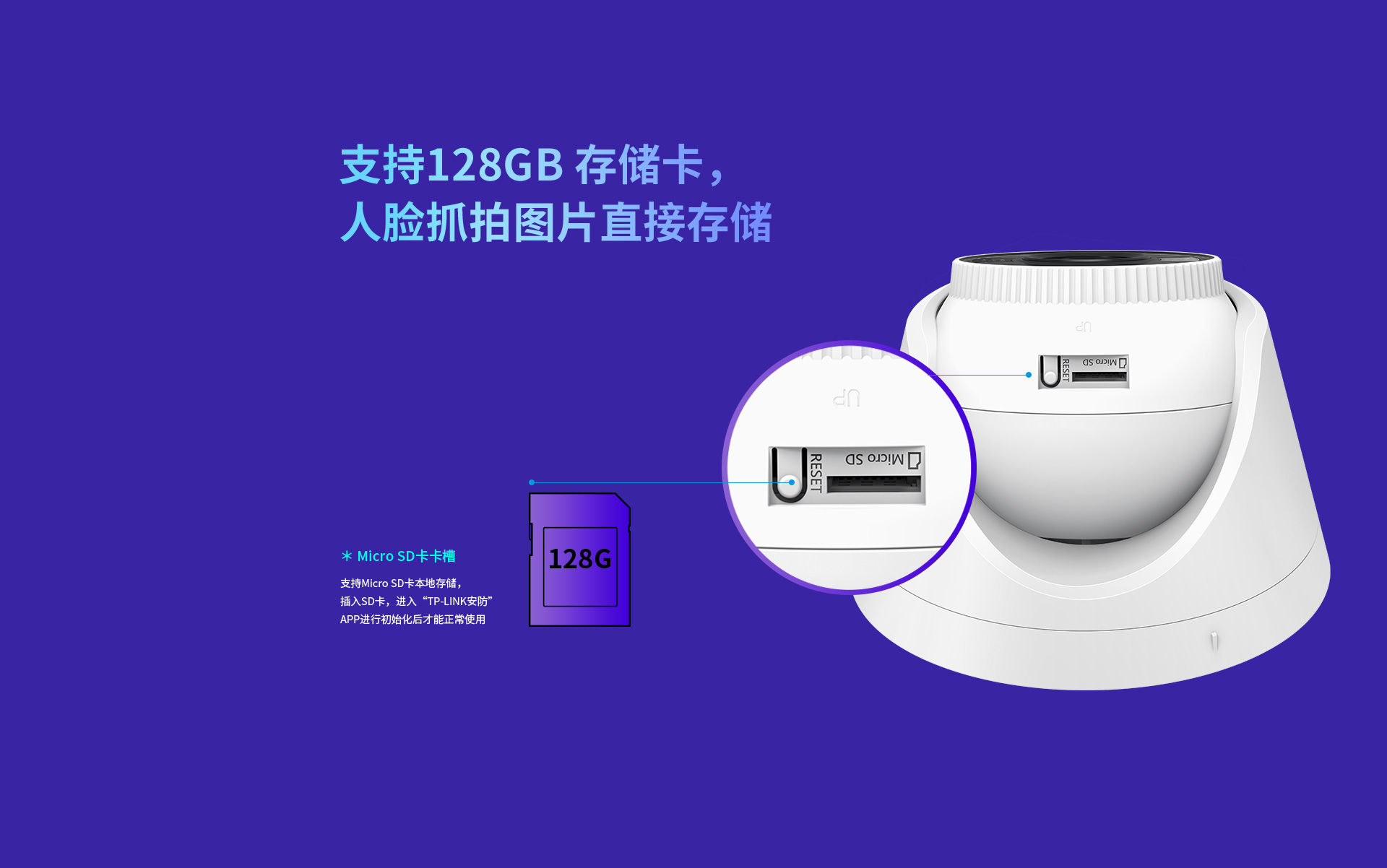 最高支持256GB Micro SD卡,拥有更长的存储时间