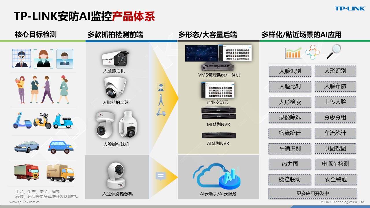 TP-LINK自研AI深度学习算法,支持抓拍人脸、电瓶车检测等智能应用