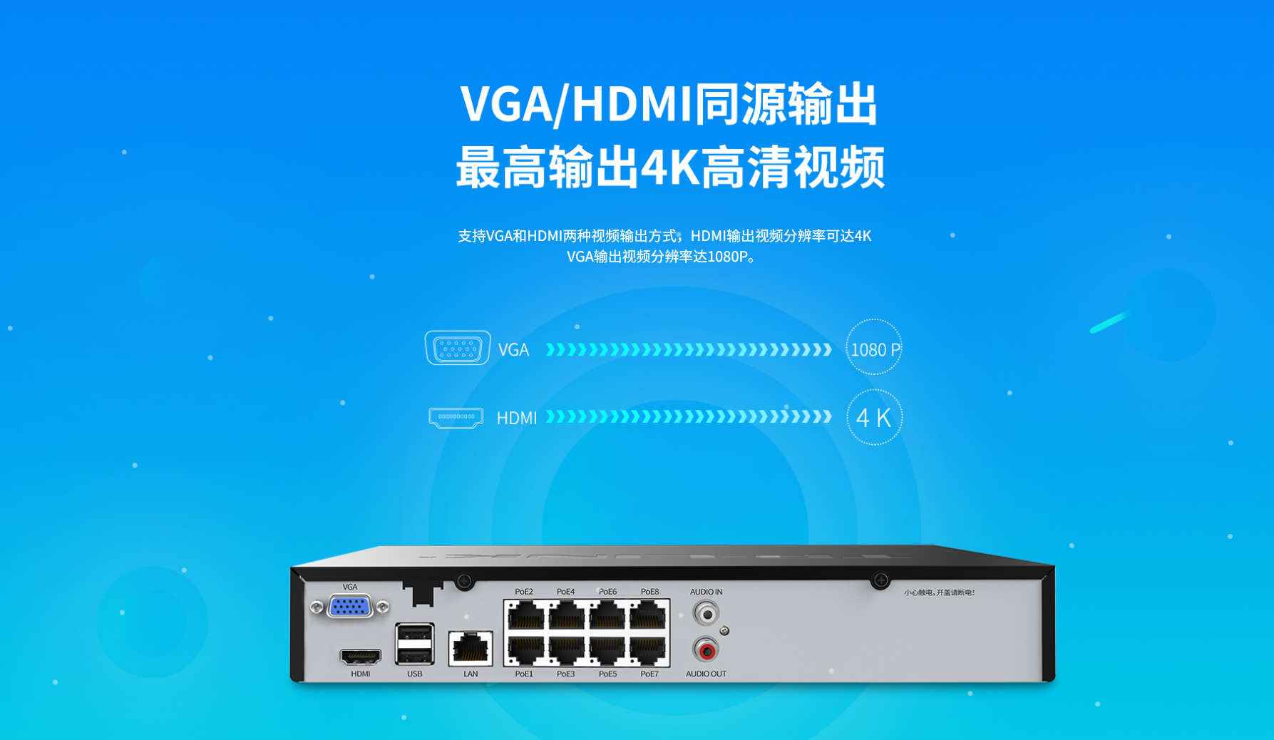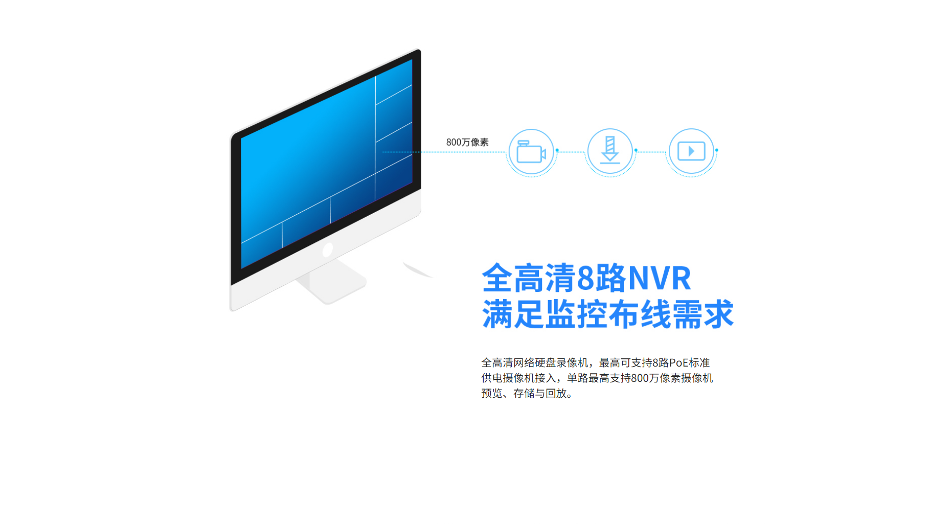 8端口支持标准PoE供电,最高可接入800万像素网络摄像机