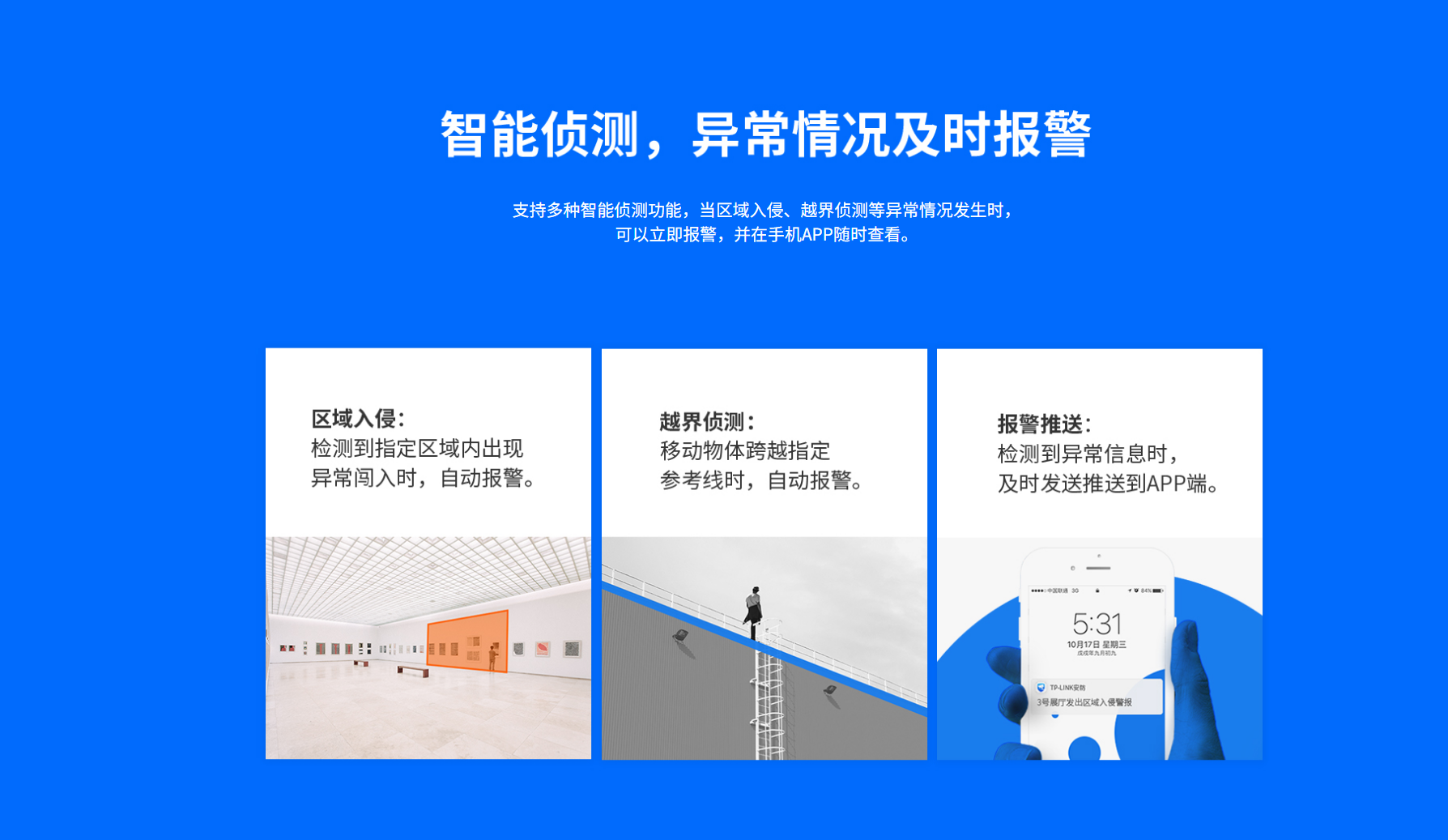 支持智能侦测,可实现区域入侵,越界侦测等多种智能事件