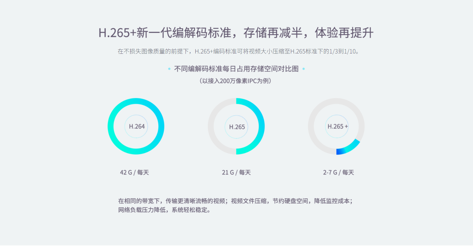 支持H.265+编码技术,同等条件,存储再省一半