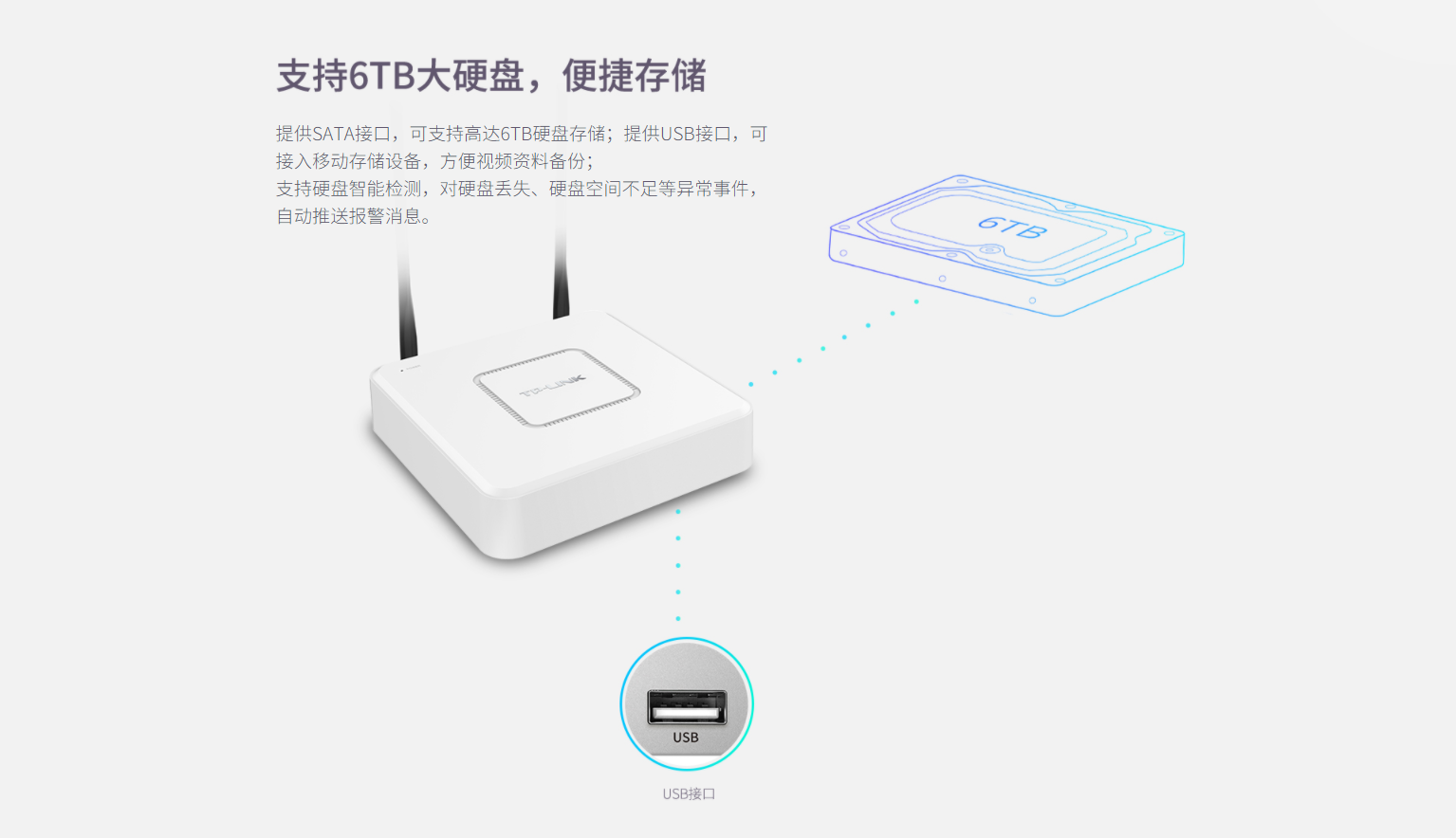 提供一个SATA接口,最高支持6TB硬盘接入