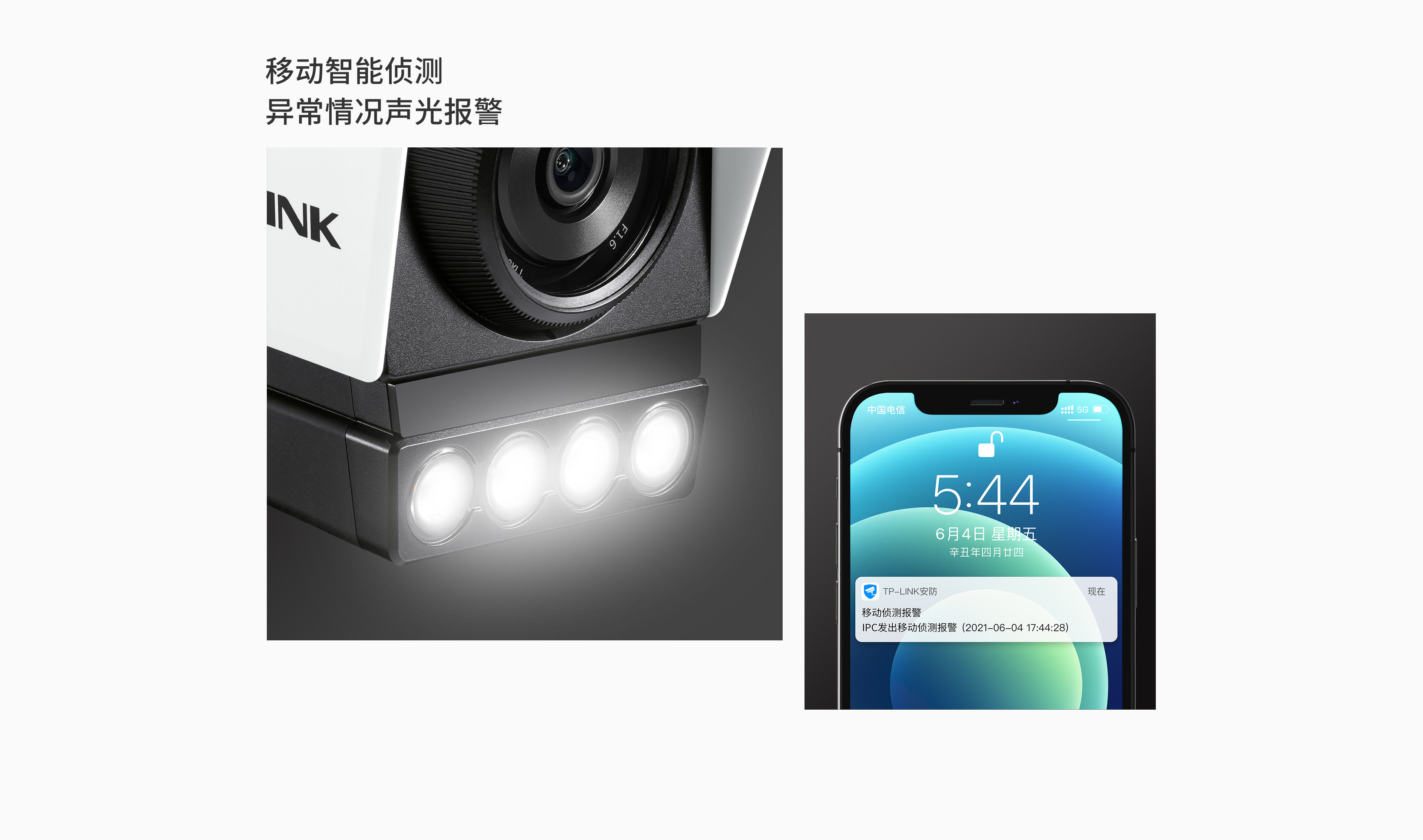 内置4颗白光灯、2颗红外灯,支持全彩/红外/移动侦测全彩