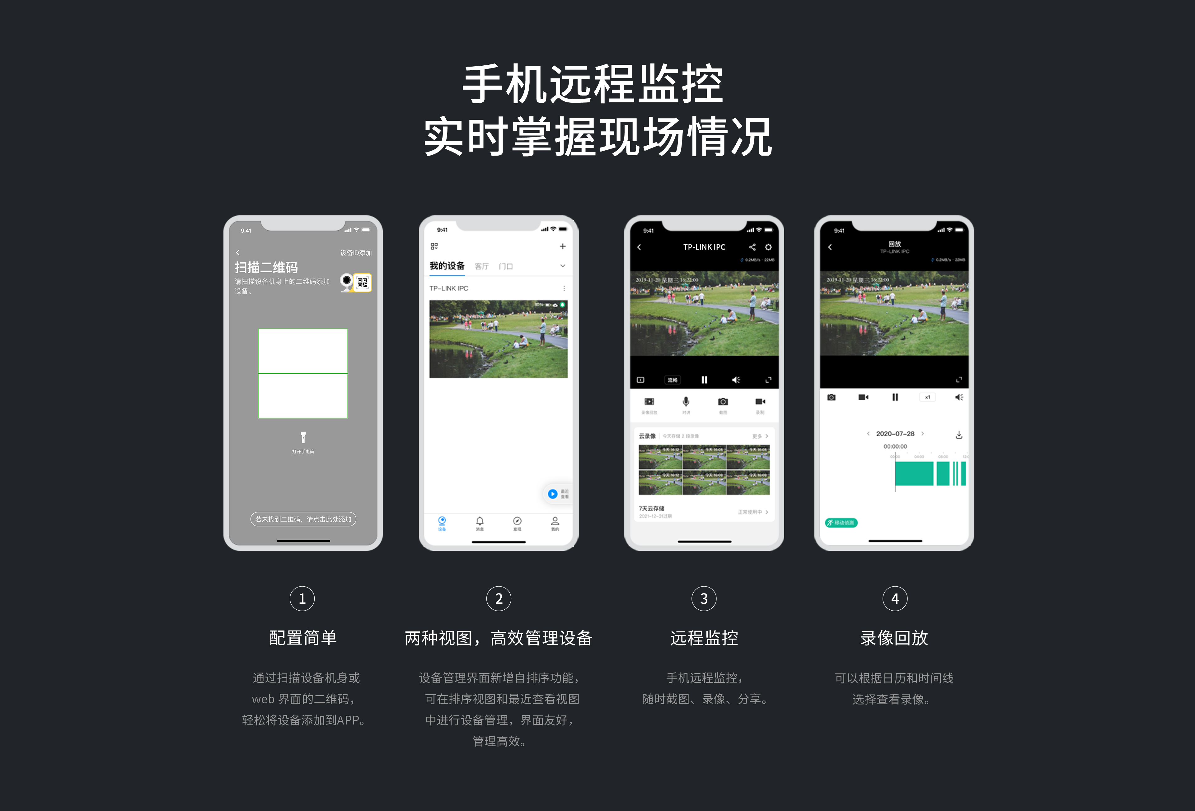内置4颗白光灯、2颗红外灯,支持全彩/红外/移动侦测全彩