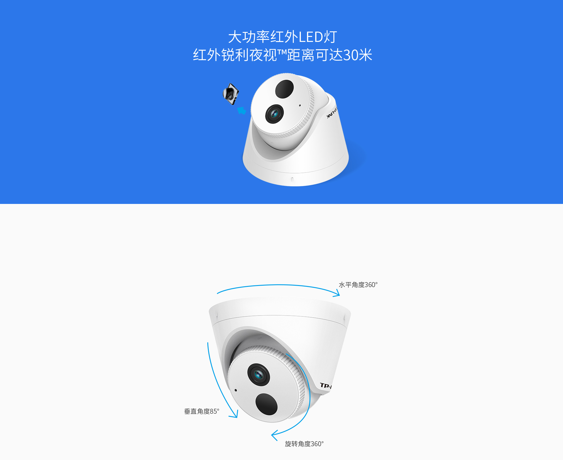 采用高效点阵式红外灯,夜视照射距离可达30米