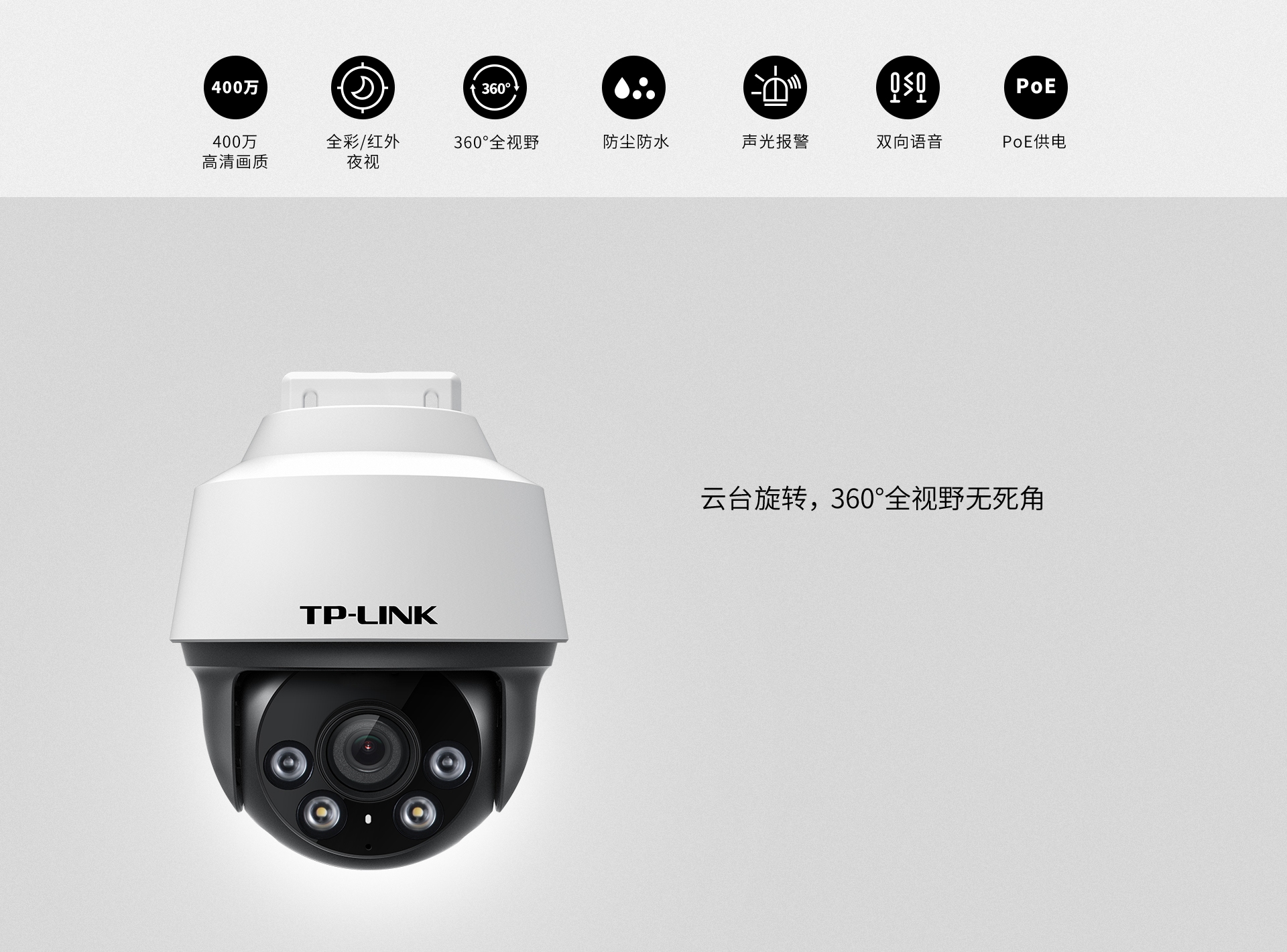 支持声光报警,高功率喇叭搭配白光灯实现智能警戒
