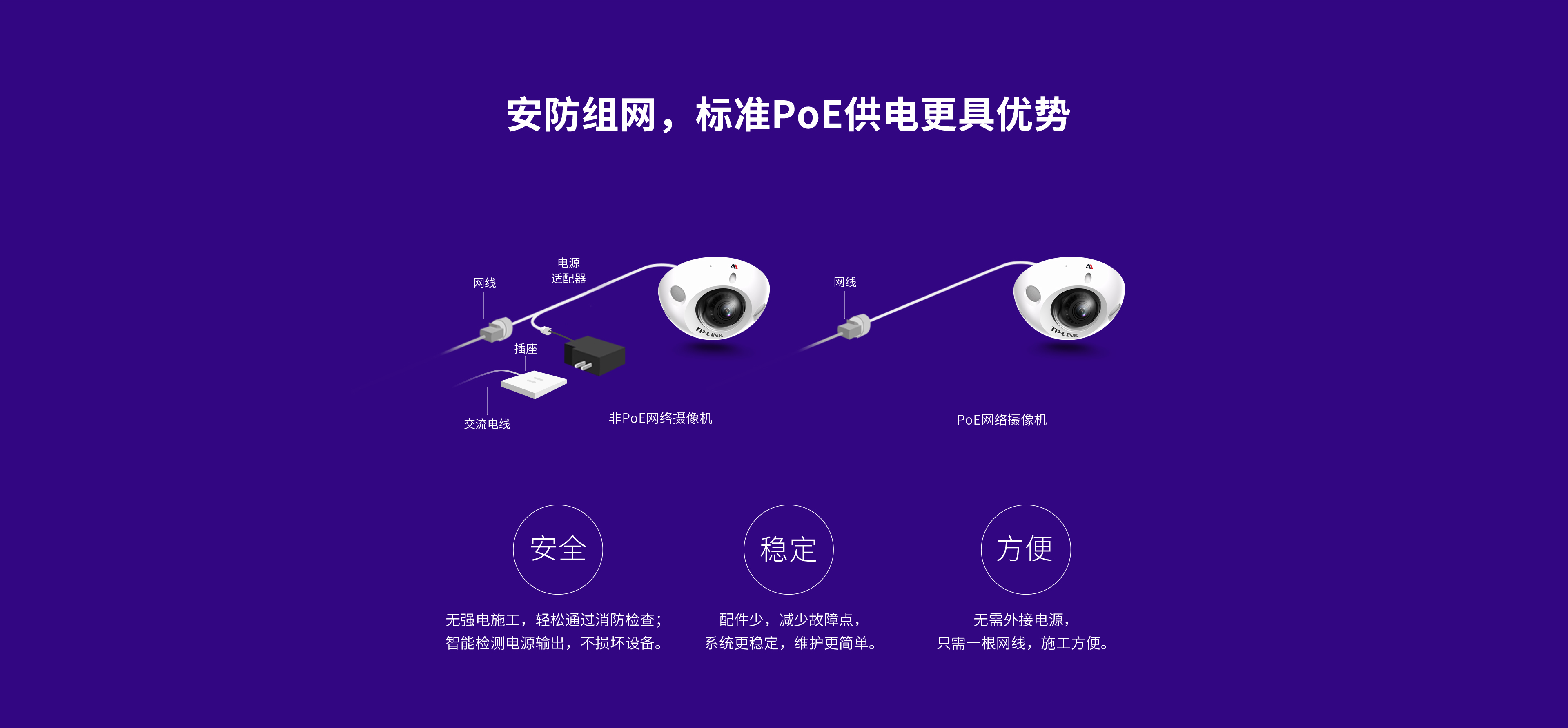 支持IEEE 802.3af/at 标准PoE供电,稳定安全,施工方便