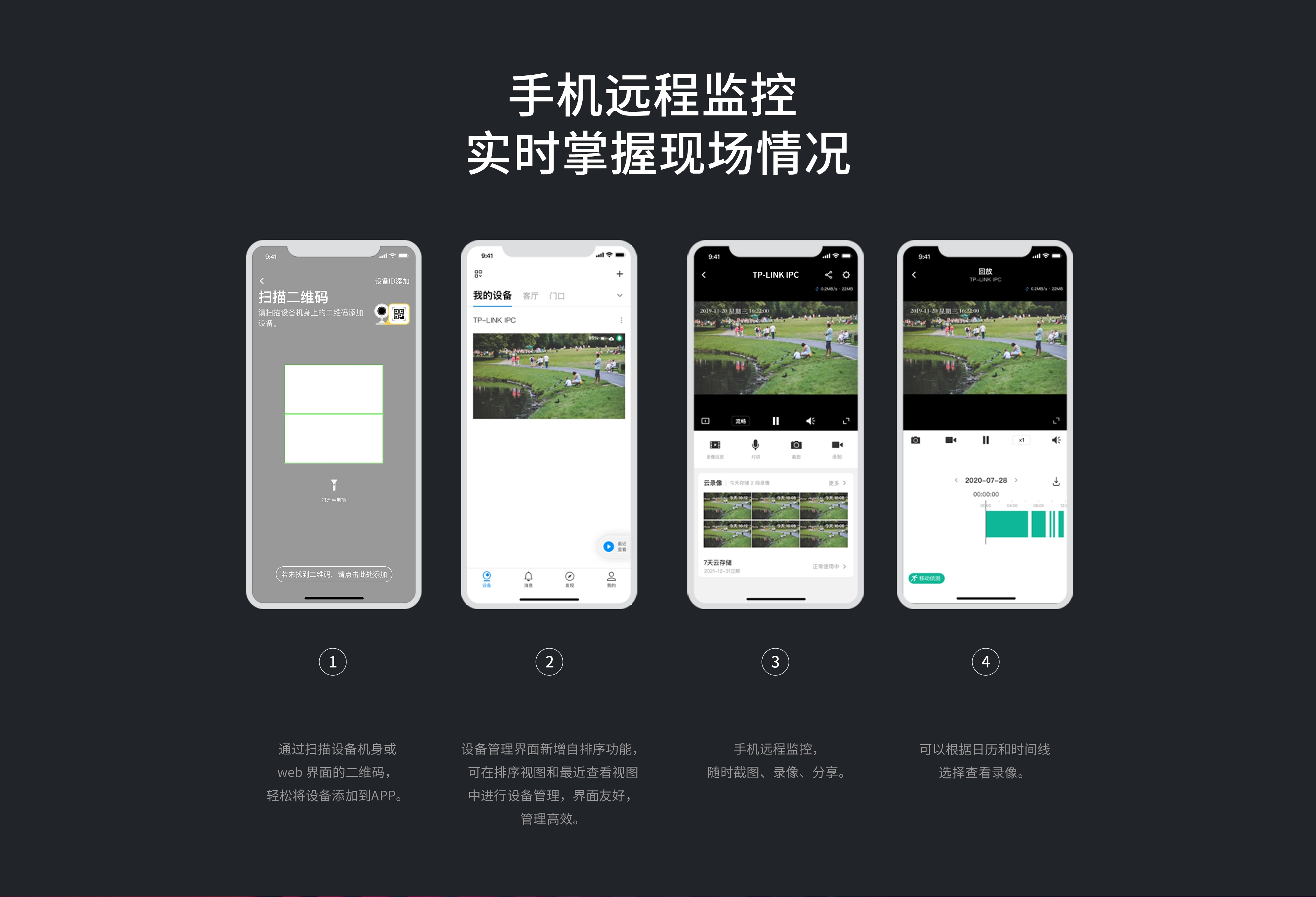 内置4颗白光灯、2颗红外灯,支持全彩/红外/移动侦测全彩