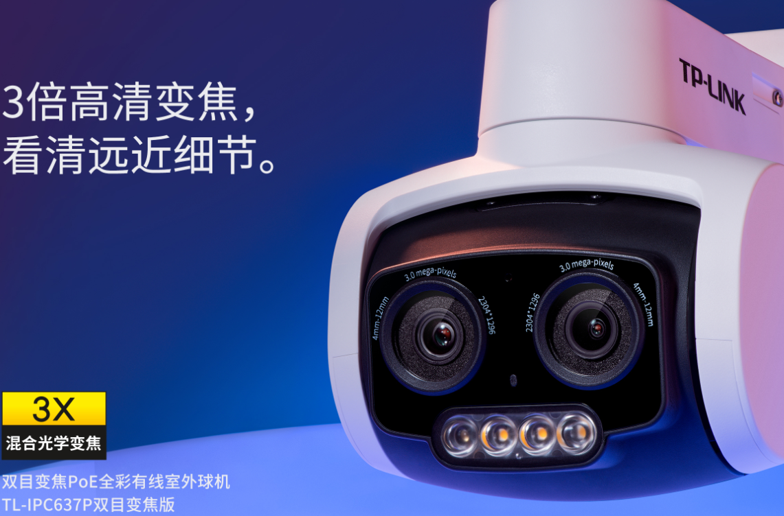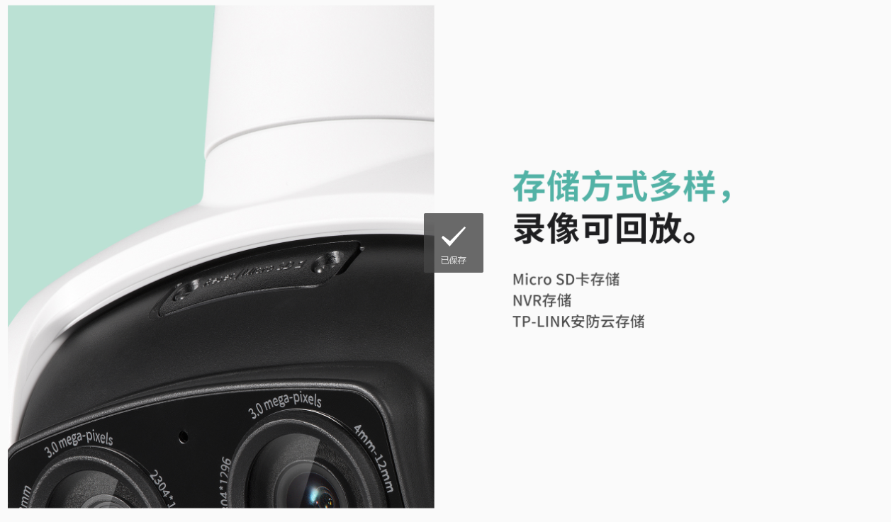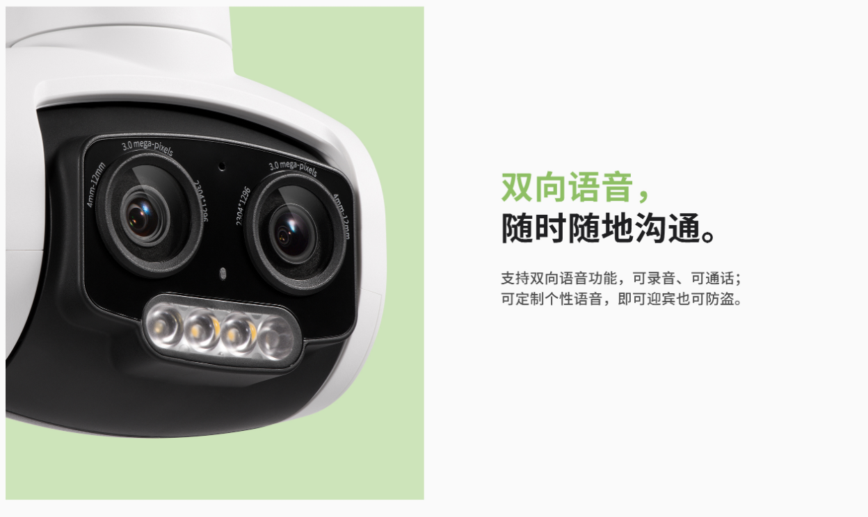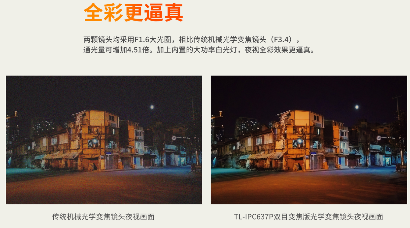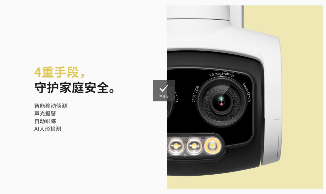 外置3颗白光灯1颗红外灯,支持红外/全彩/移动侦测全彩
