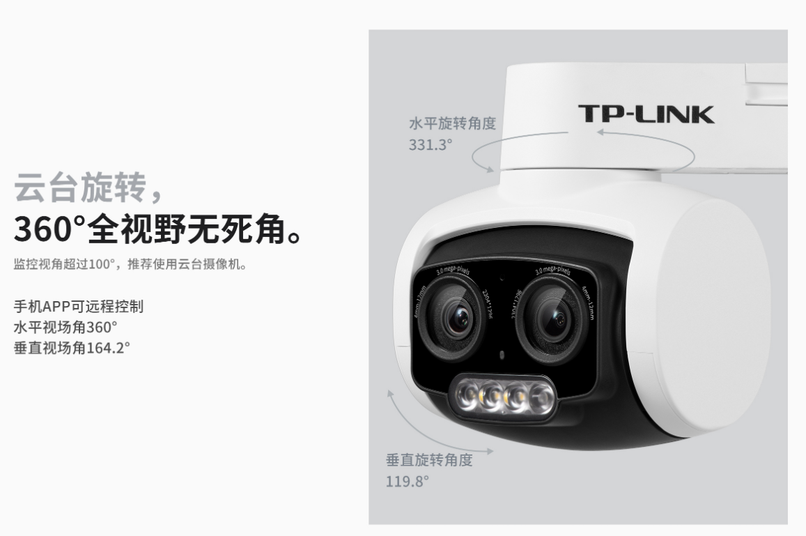 云台转动,水平旋转角度331°,垂直旋转角度120°