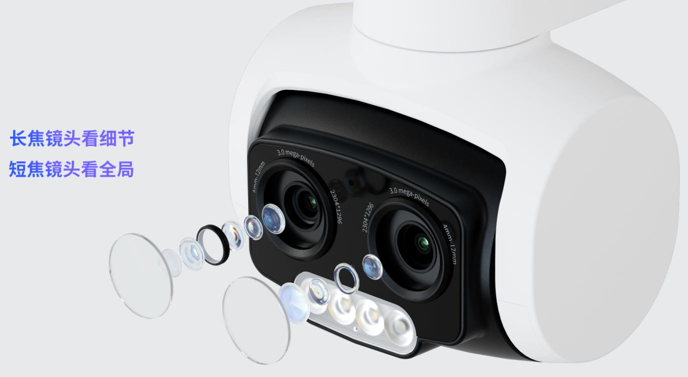 长焦成像模组配合短焦成像模组,实现3倍混合光学变焦