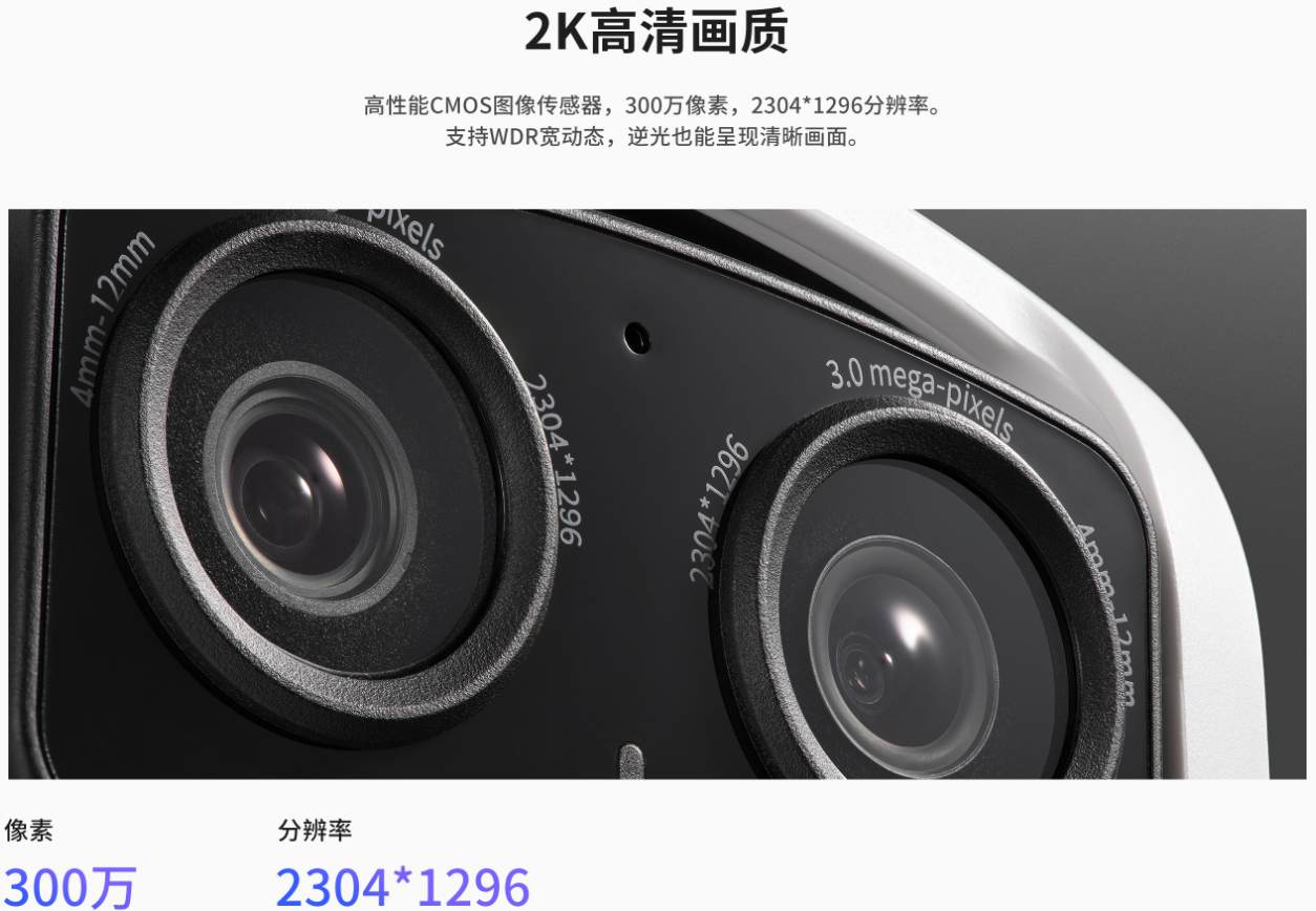 最高分辨率2304*1296,输出300万像素清晰实时画面