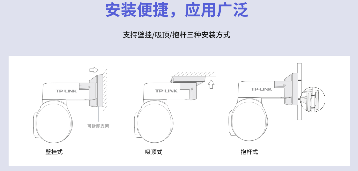 独创分离式支架,支持抱杆/吸顶/壁挂安装