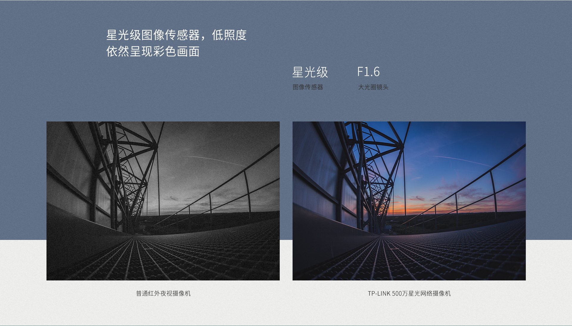 采用1/2.7"高性能CMOS星光级图像传感器,低照还原全彩画面