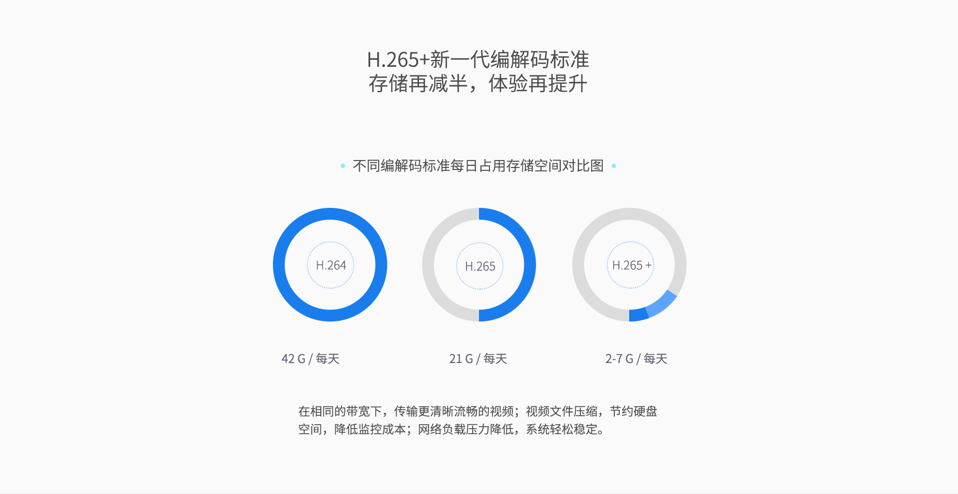 支持H.265+/H.265/H.264视频编码标准,存储再减半,体验再提升