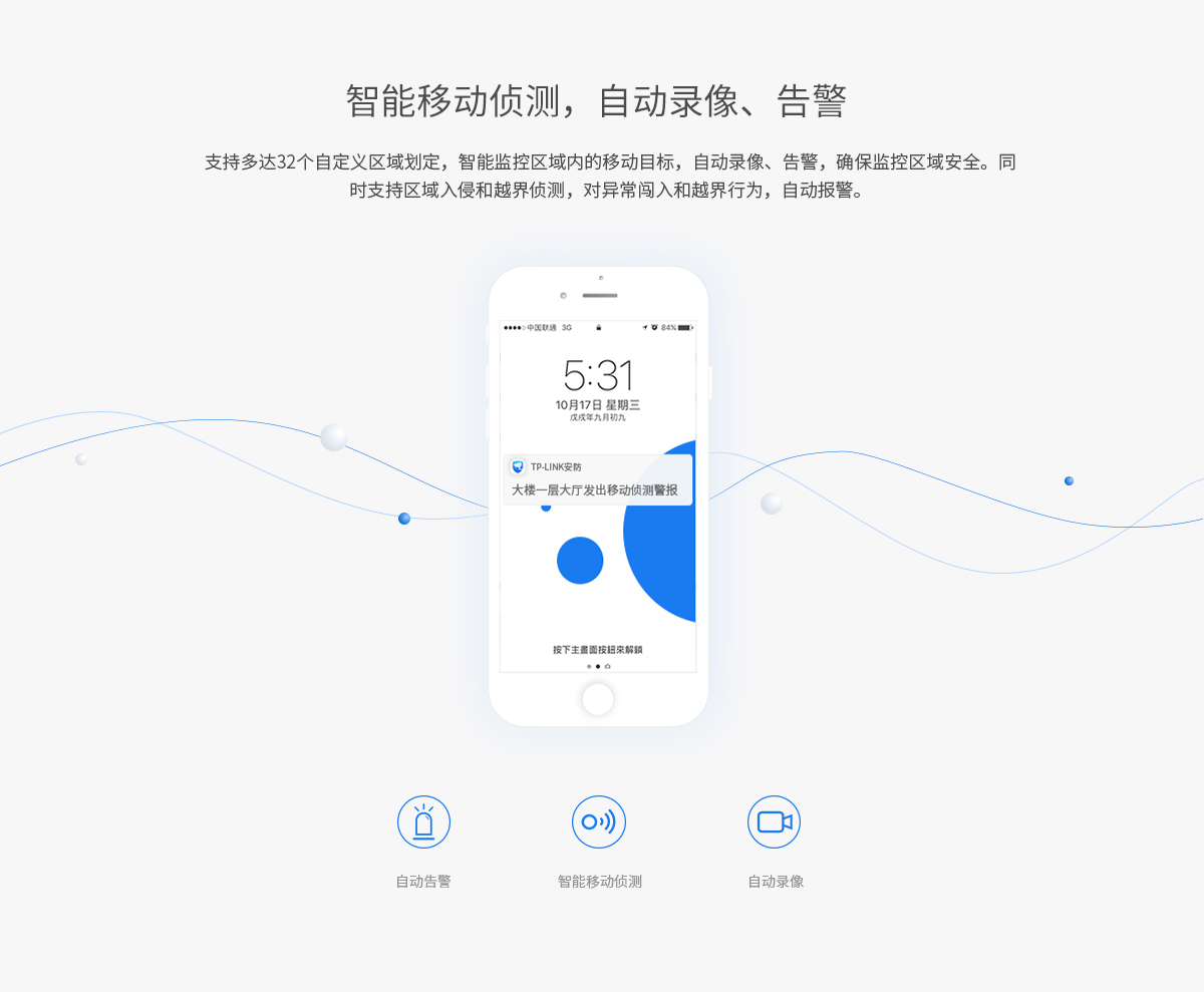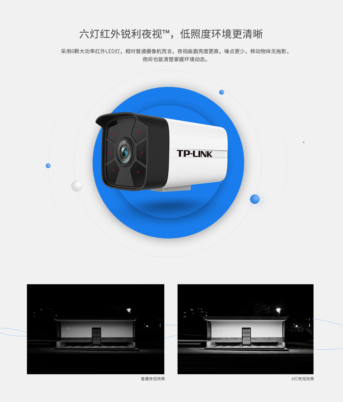采用6颗大功率红外灯,夜视照射距离可达80米