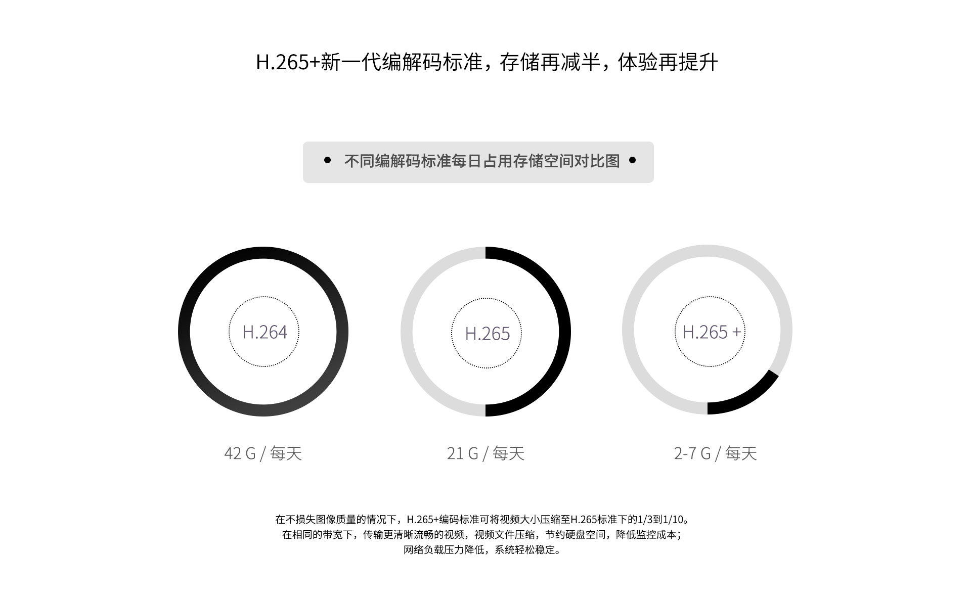 支持H.265+/H.265/H.264视频编码标准,存储再减半,体验再提升