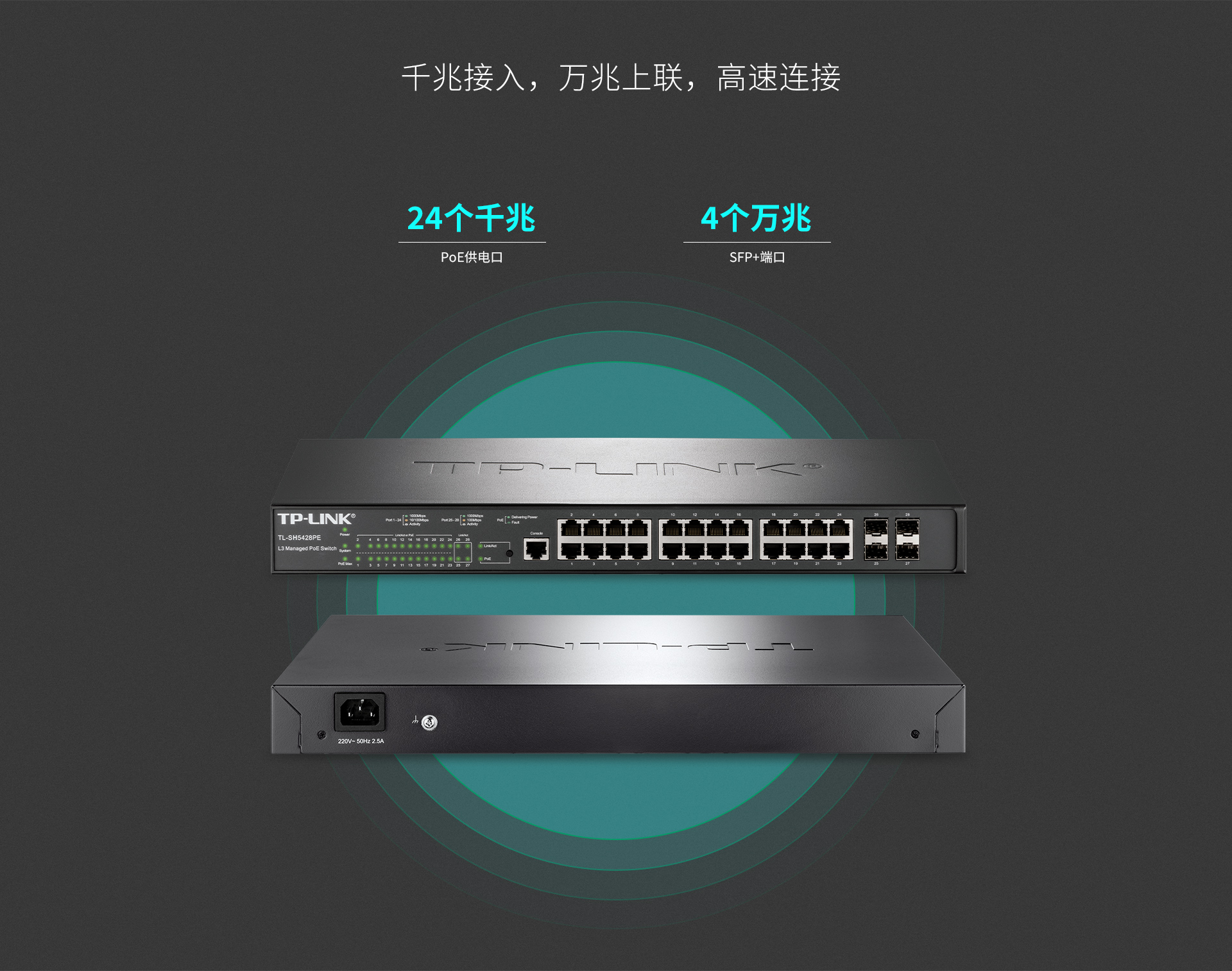 24个10/100/1000Base-T RJ45端口,支持IEEE 802.3at/af PoE供电