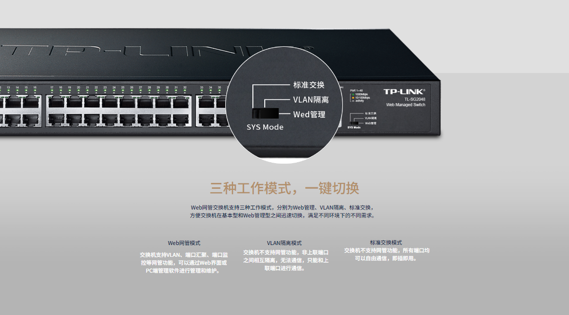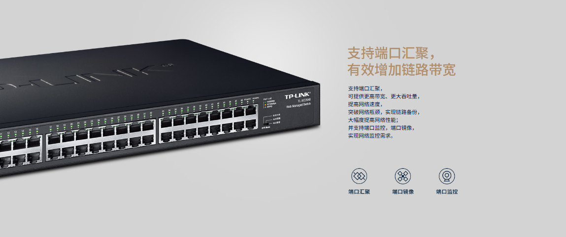 支持端口汇聚、端口监控、端口隔离、端口流量统计