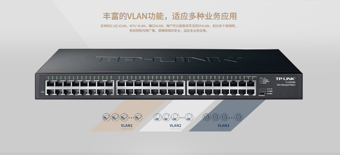 支持802.1Q VLAN、MTU VLAN、端口VLAN
