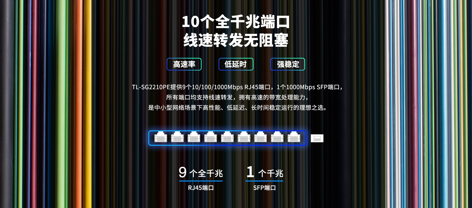 9个10/100/1000Base-T RJ45端口,1个千兆SFP光口