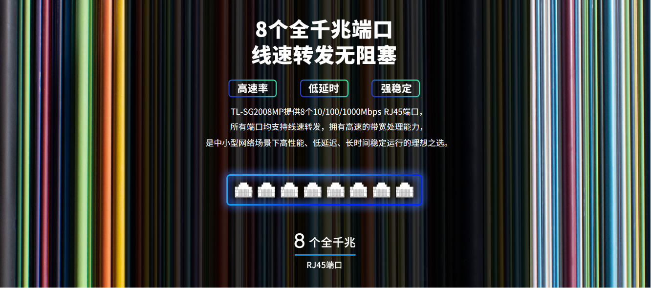 8个10/100/1000Base-T RJ45端口