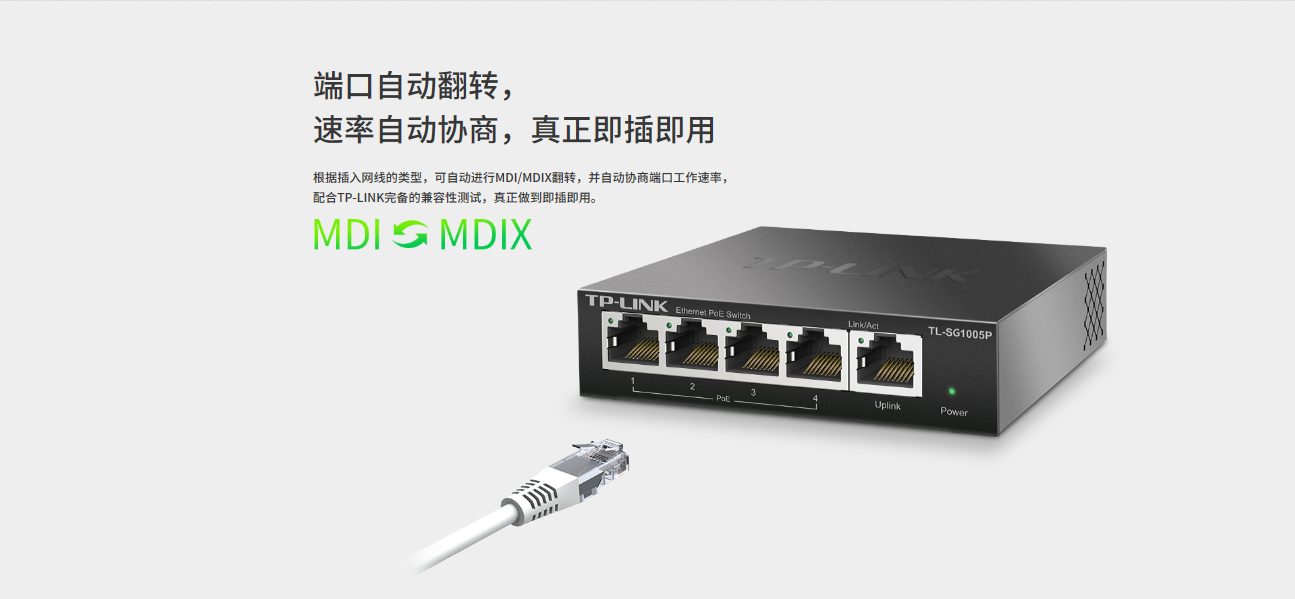 支持端口自动翻转(Auto MDI/MDIX)功能