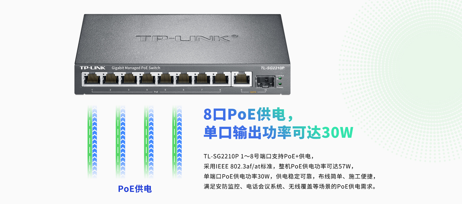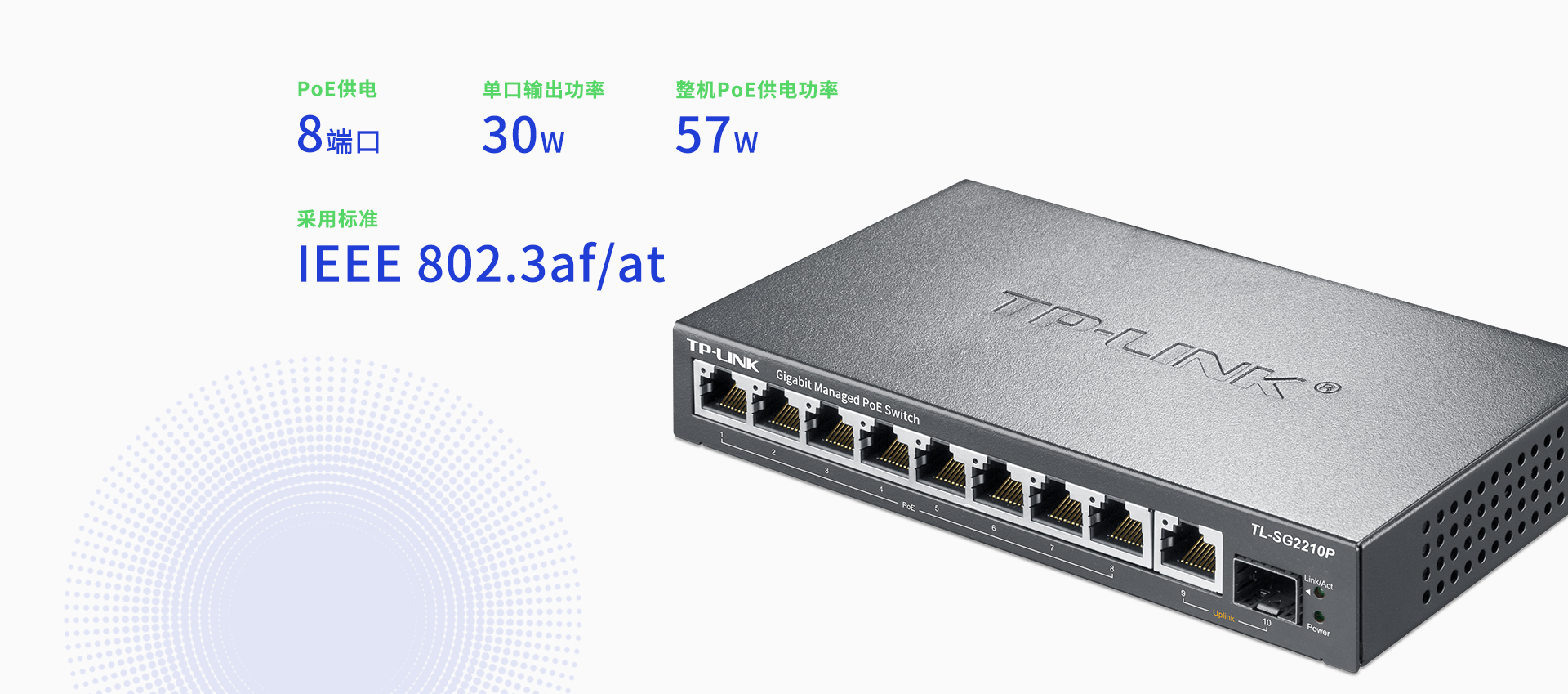 整机最大PoE供电功率为57W,单端口最大PoE供电功率为30W