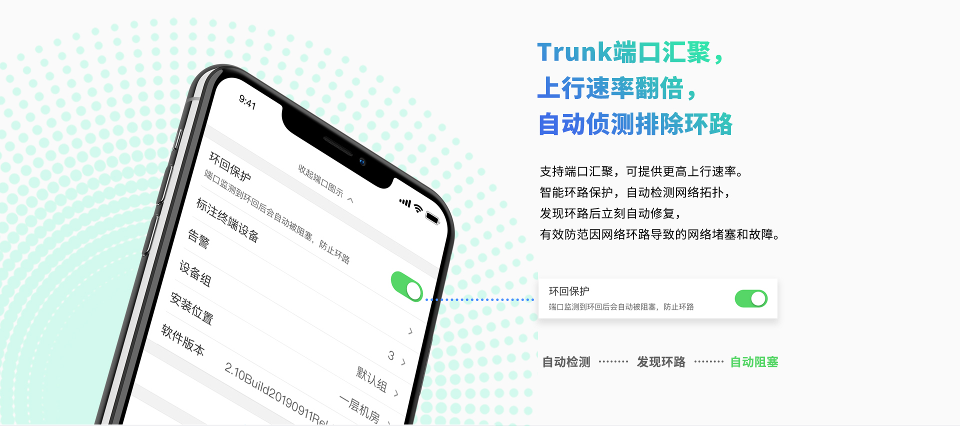支持端口汇聚、端口流量统计、端口监控、线缆检测、环回保护
