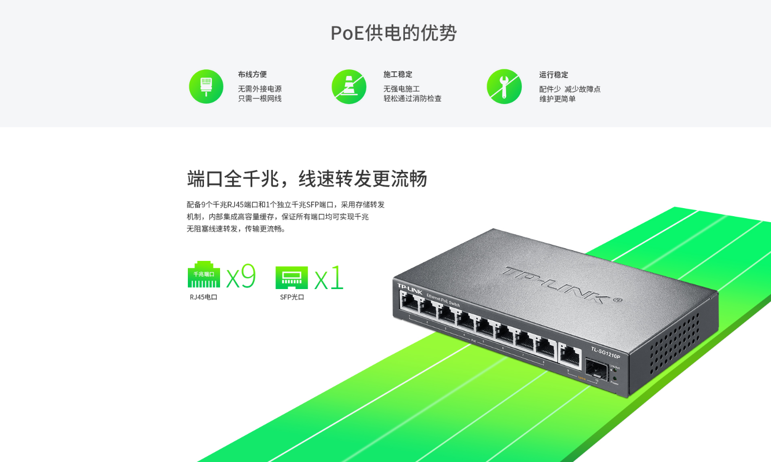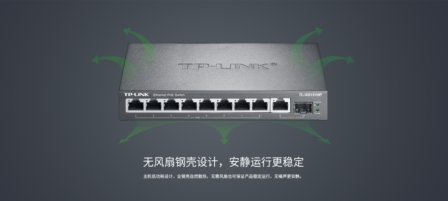 8个10/100/1000Base-T RJ45端口支持PoE+供电