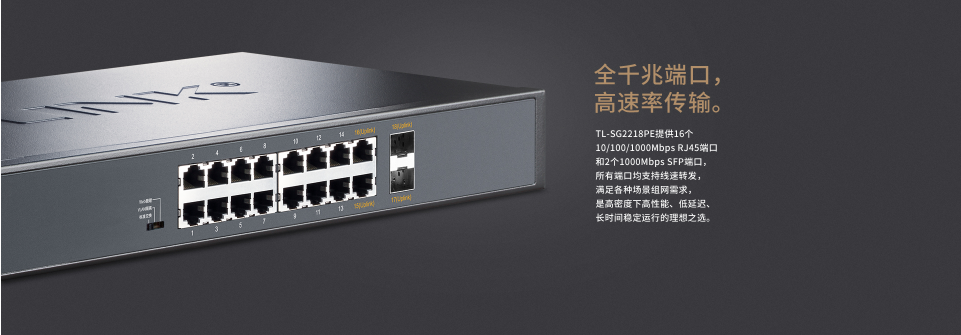 16个10/100/1000Base-T RJ45端口,2个千兆SFP光口