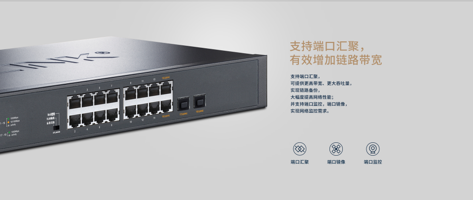 支持端口流量统计、端口监控、端口汇聚、端口隔离