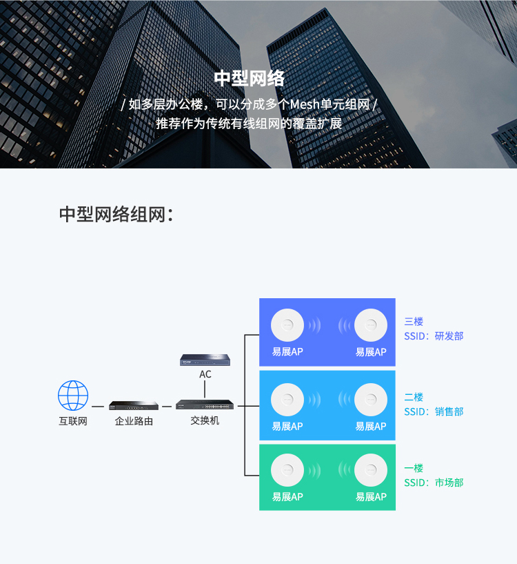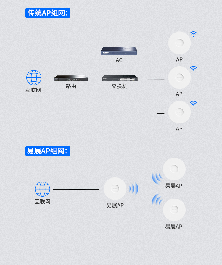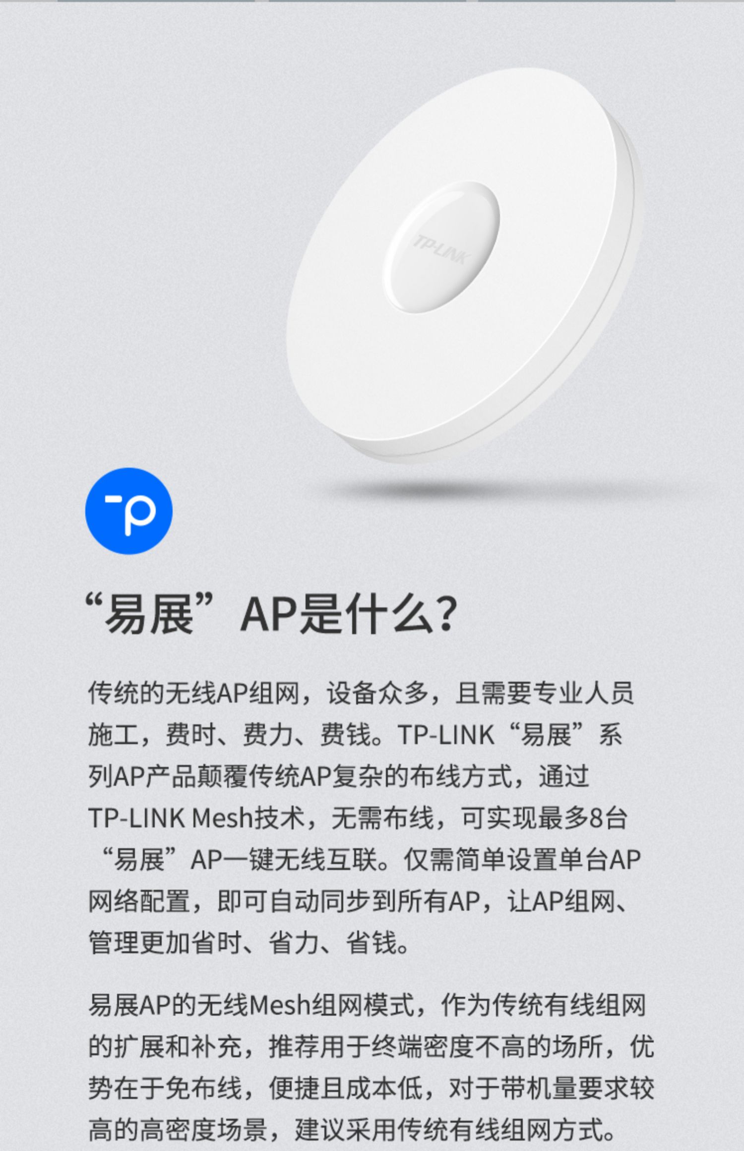 支持易展MESH组网,子节点免布线,覆盖盲点信号扩展更方便