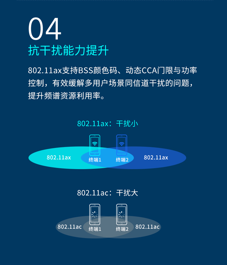 频谱导航,引导双频客户端优先连接到5GHz频段上,使2.4GHz和5GHz两个频段负载更均衡,保障网络性能
