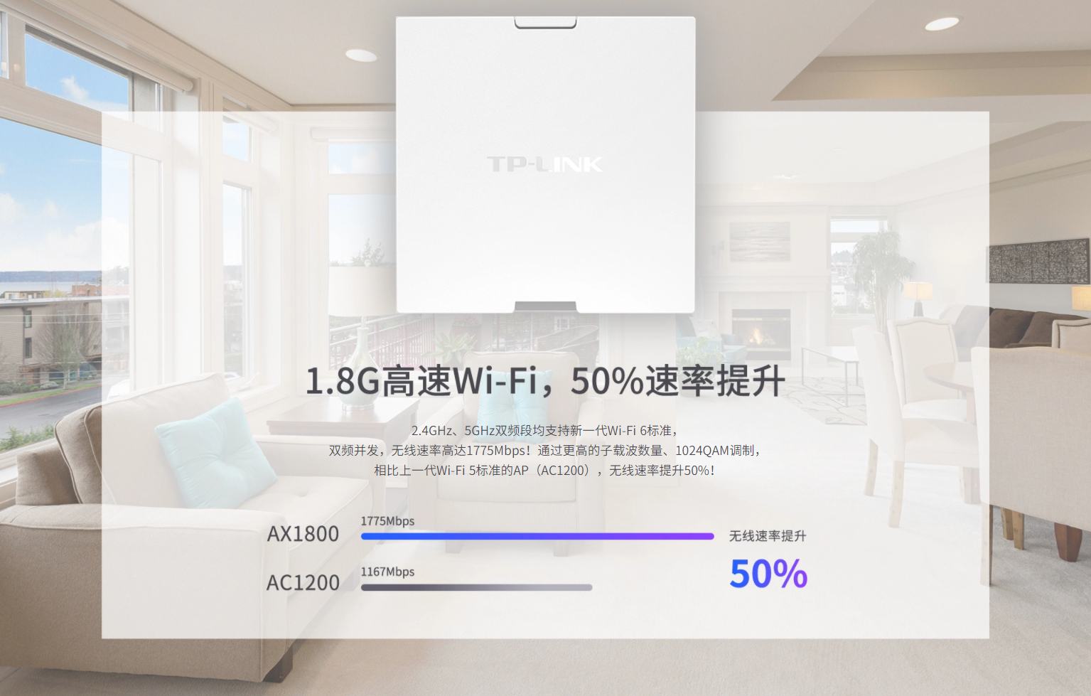 11AX 2.4G/5G 双频并发,无线速率高达1775Mbps