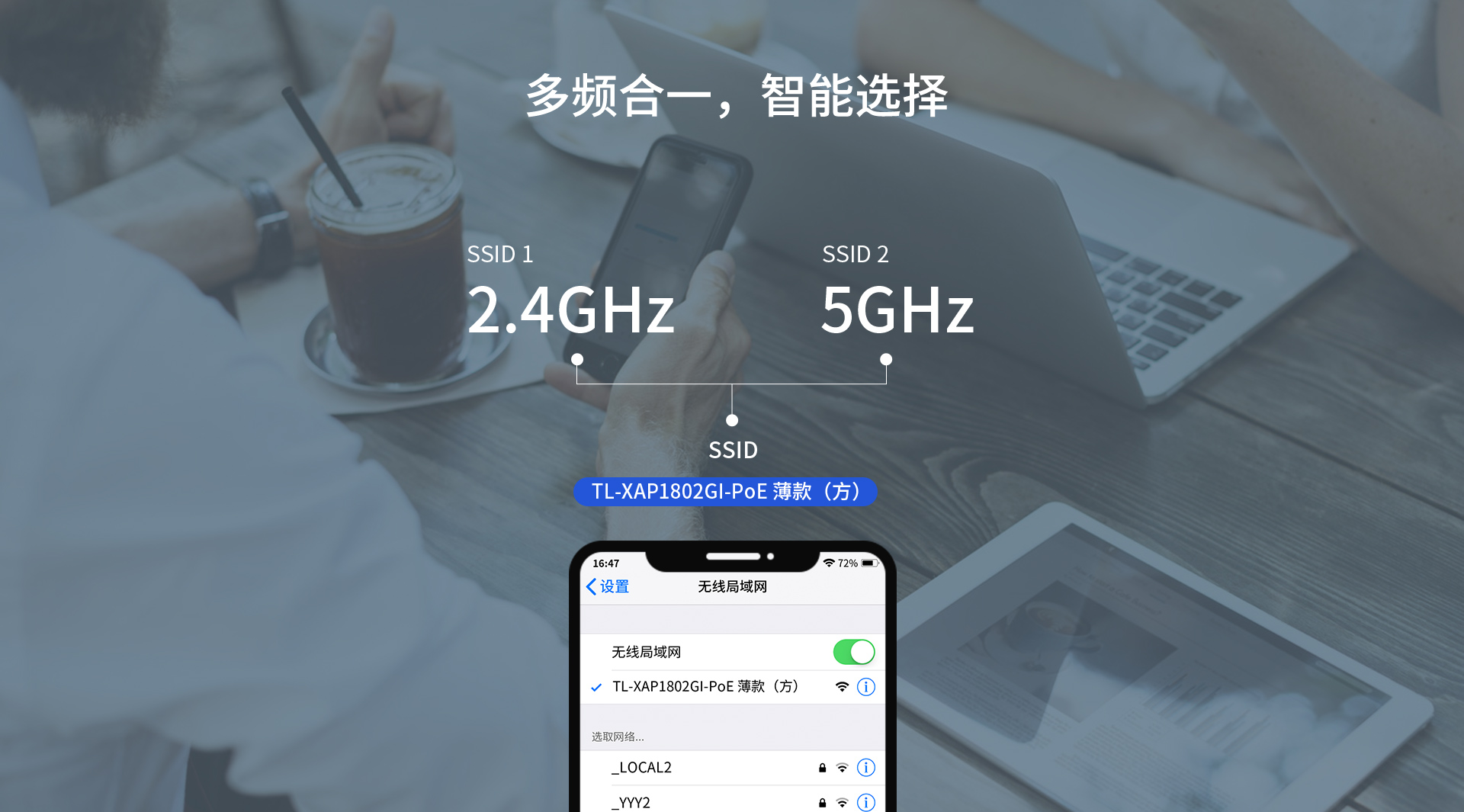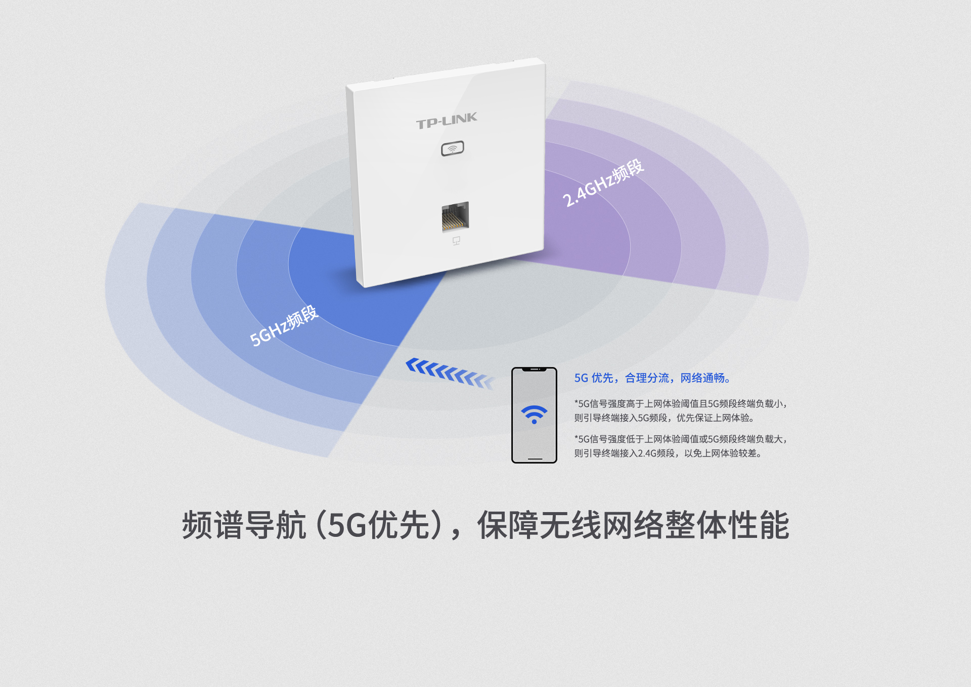 频谱导航,引导双频客户端优先连接5GHz,使2.4GHz 和5GHz 两个频段负载更均衡,保障网络性能