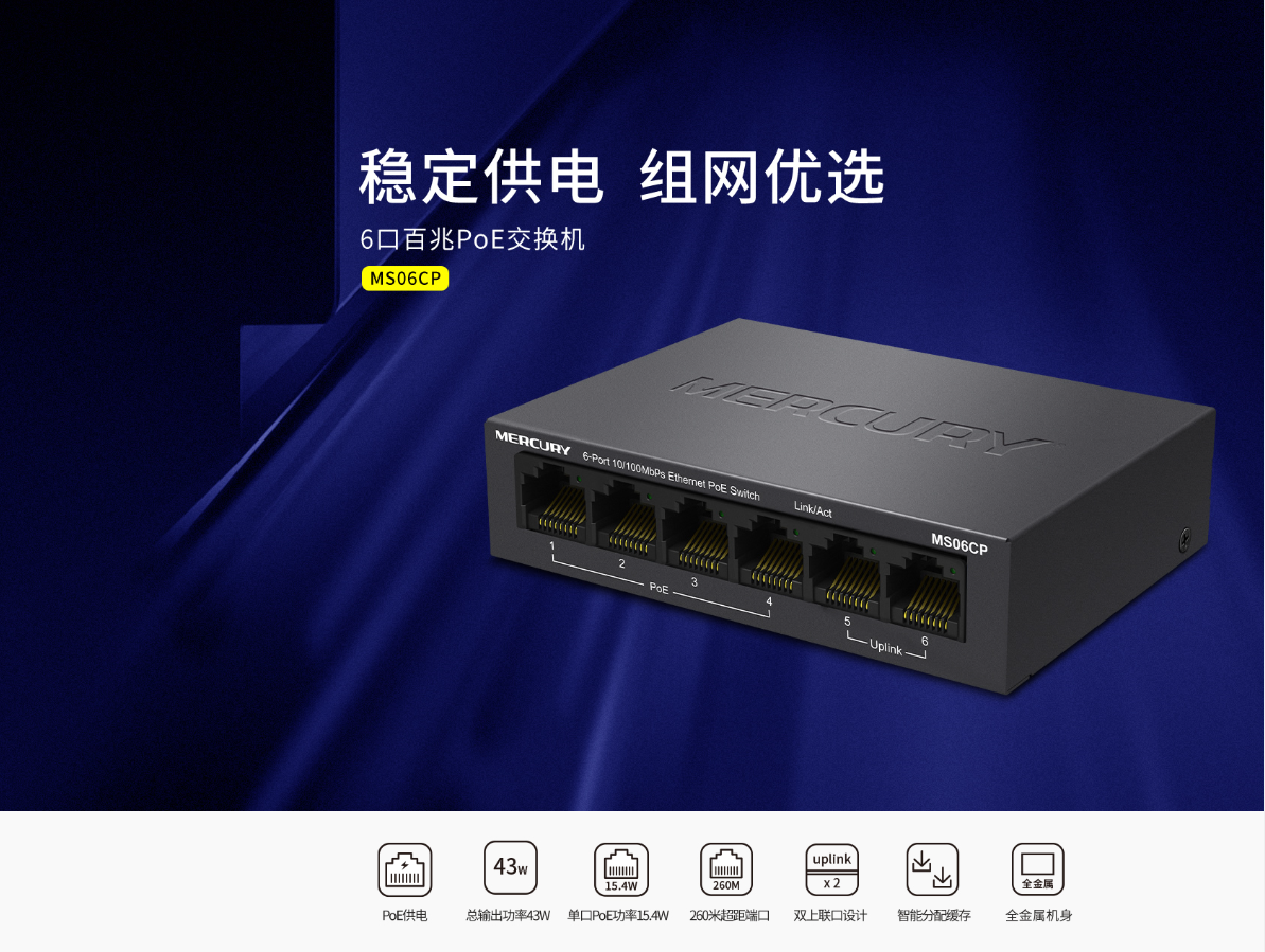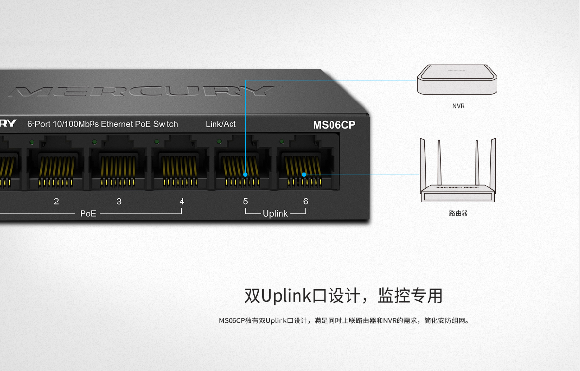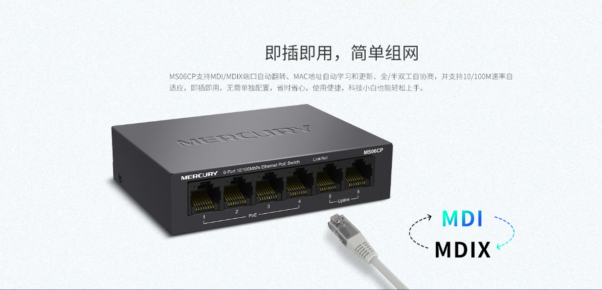 6个10/100M 自适应RJ45端口