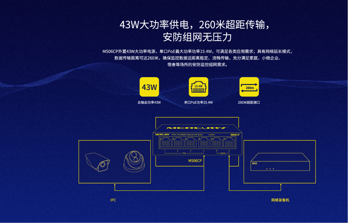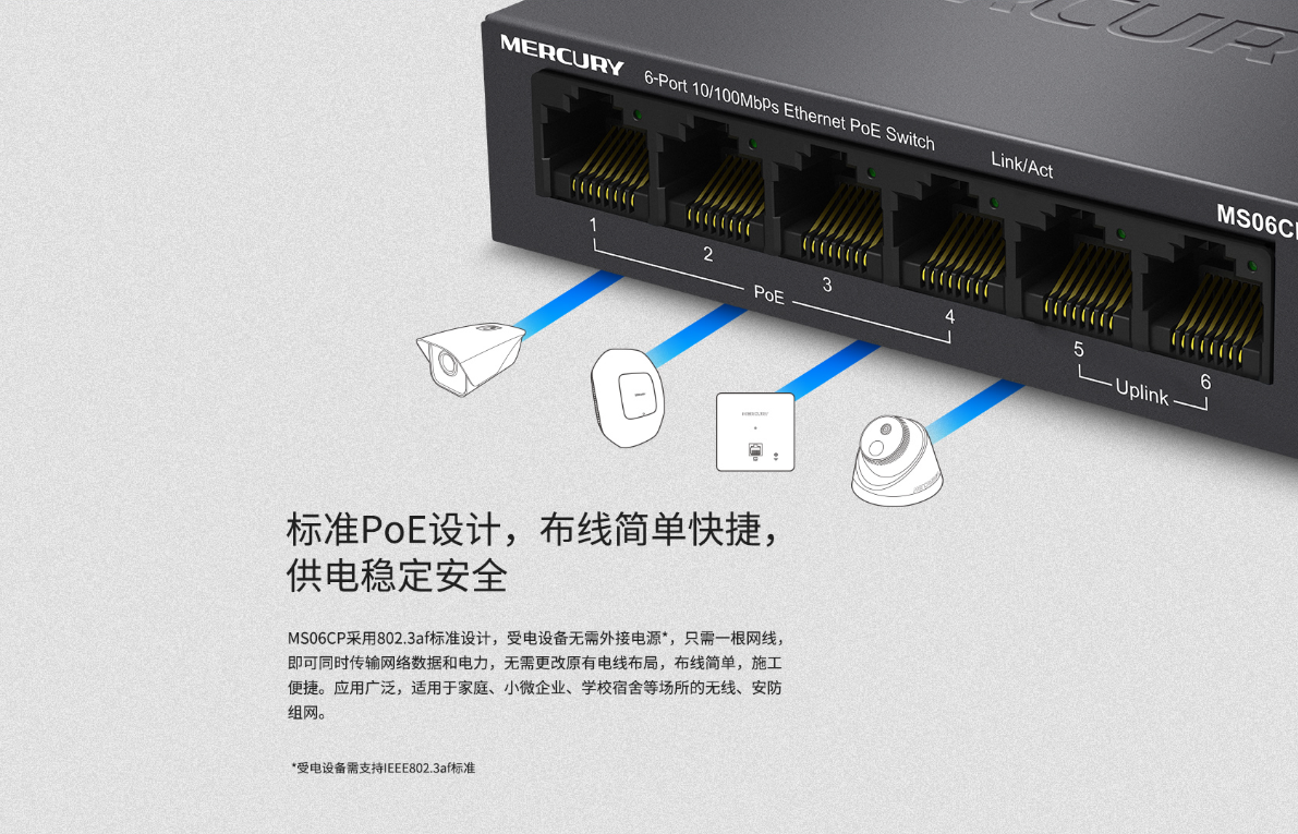 单端口POE功率可达15.4W,支持IEEE802.3af协议
