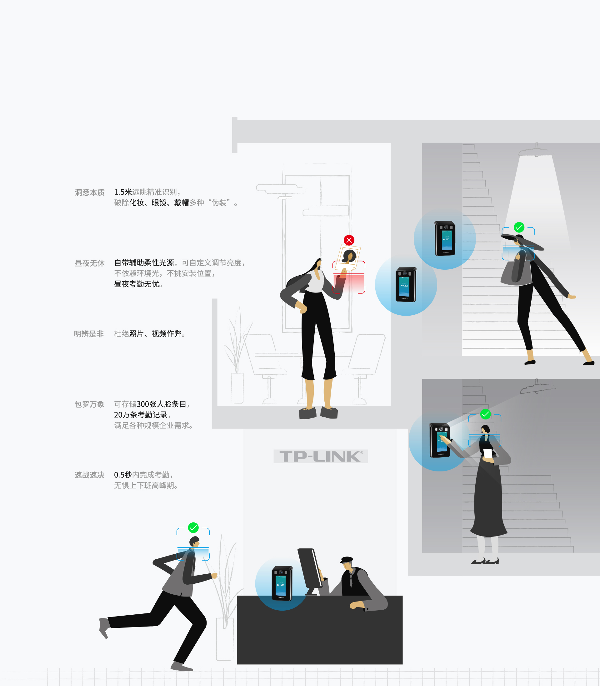 支持300张人脸库,可存储20万条考勤/门禁记录