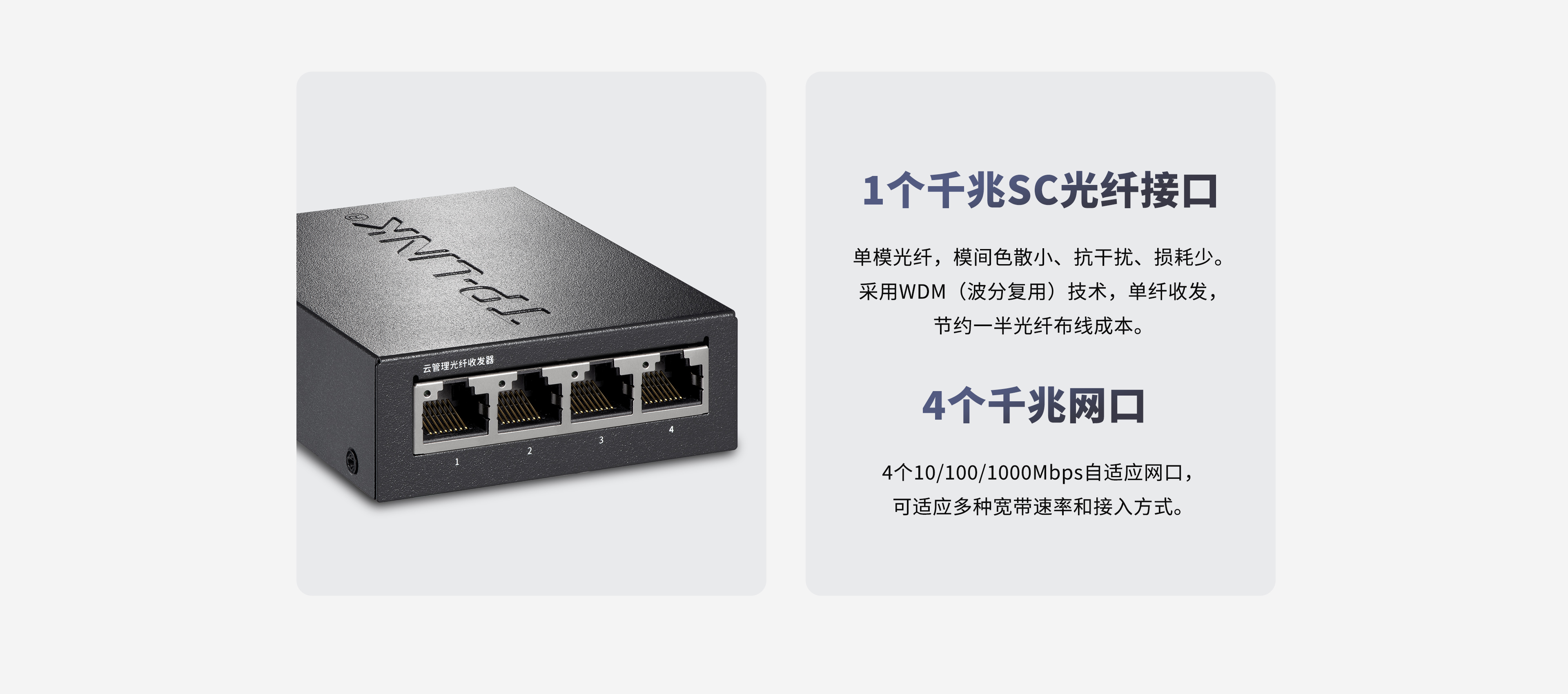1个100/1000Mbps SC光纤口,4个10/100/1000Mbps RJ45网口