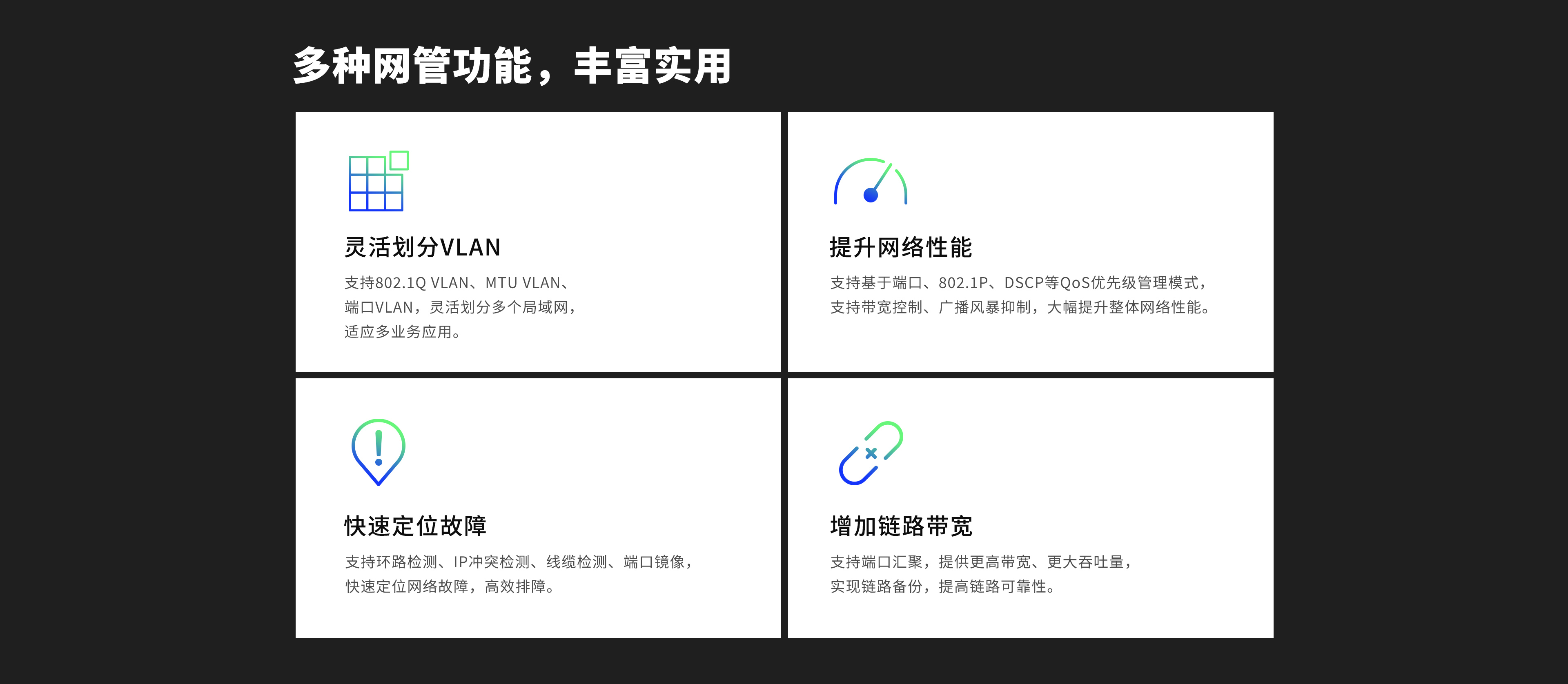 支持端口汇聚、端口流量统计、端口监控、端口隔离