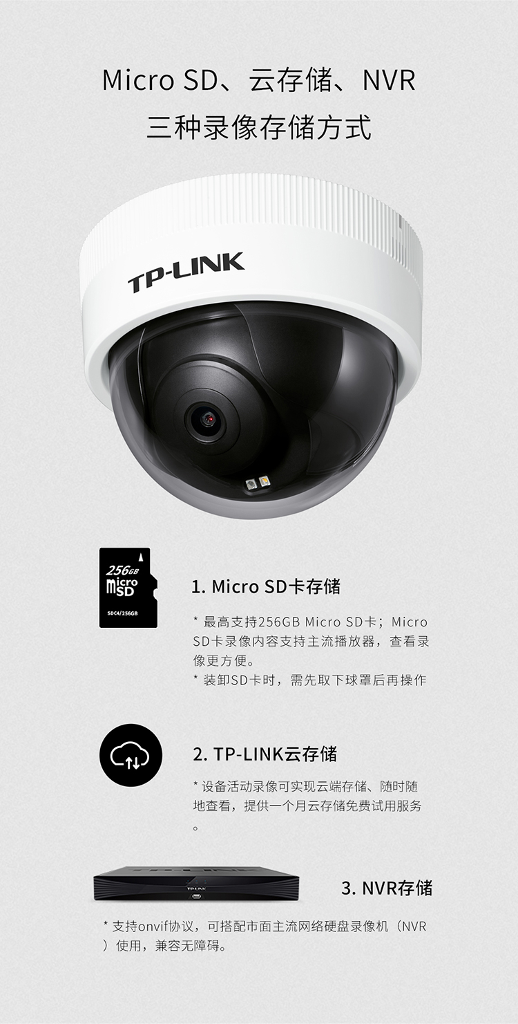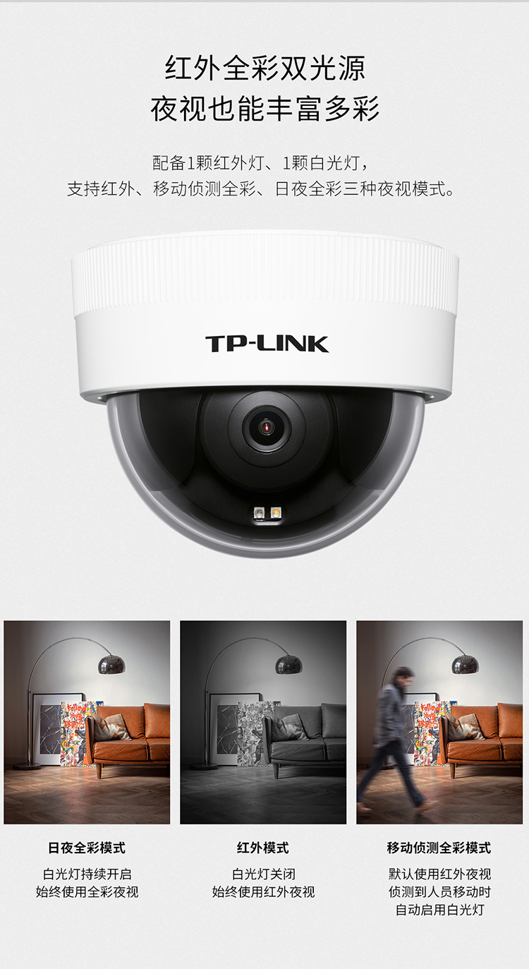 标配双光全彩夜视,三种夜视模式均可选用
