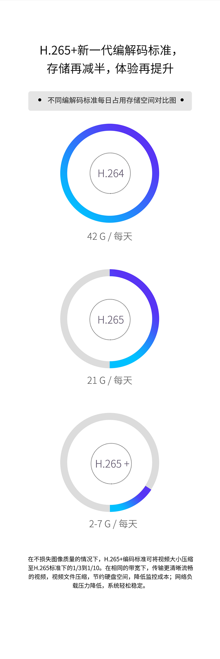 支持H.265+/H.265/H.264视频编码标准,存储再减半,体验再提升