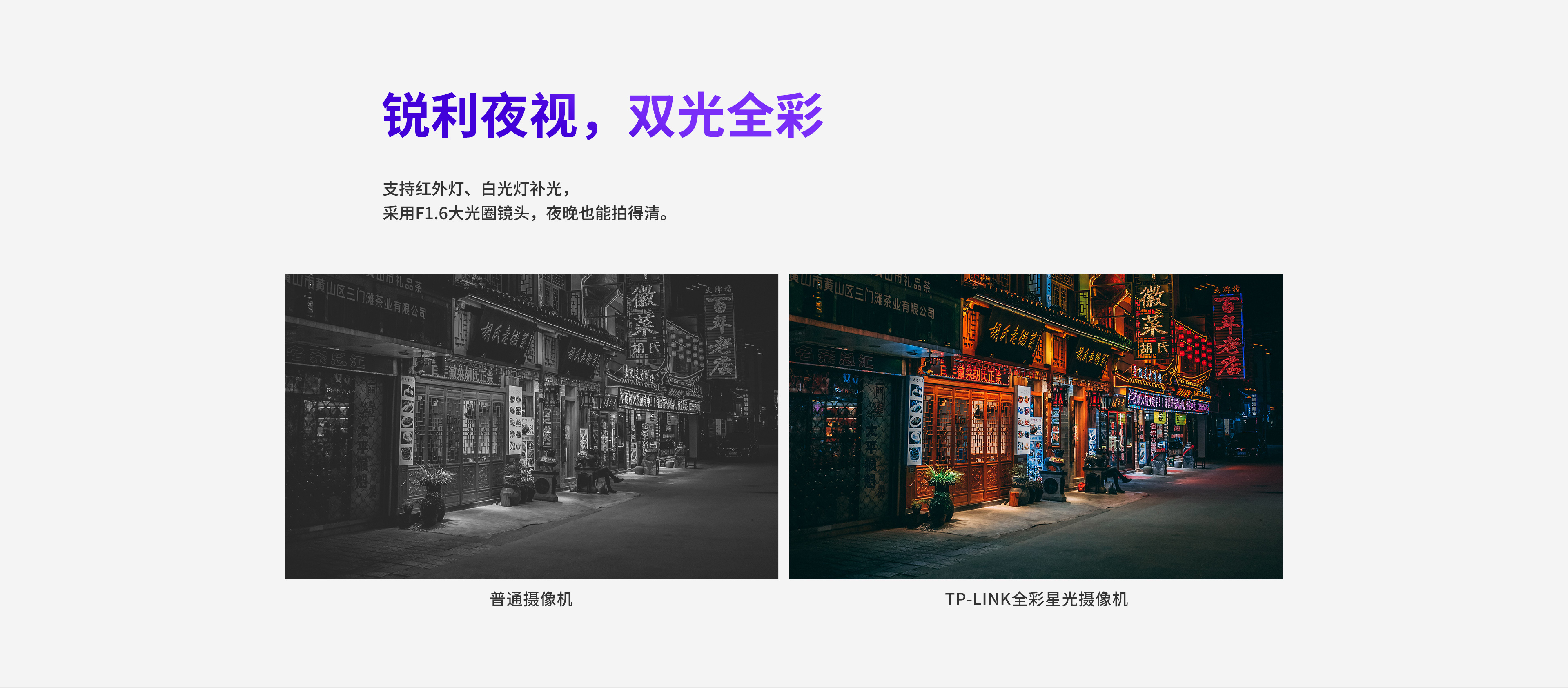 • 外置4颗暖光灯、2颗红外灯,支持全彩/红外/移动侦测全彩