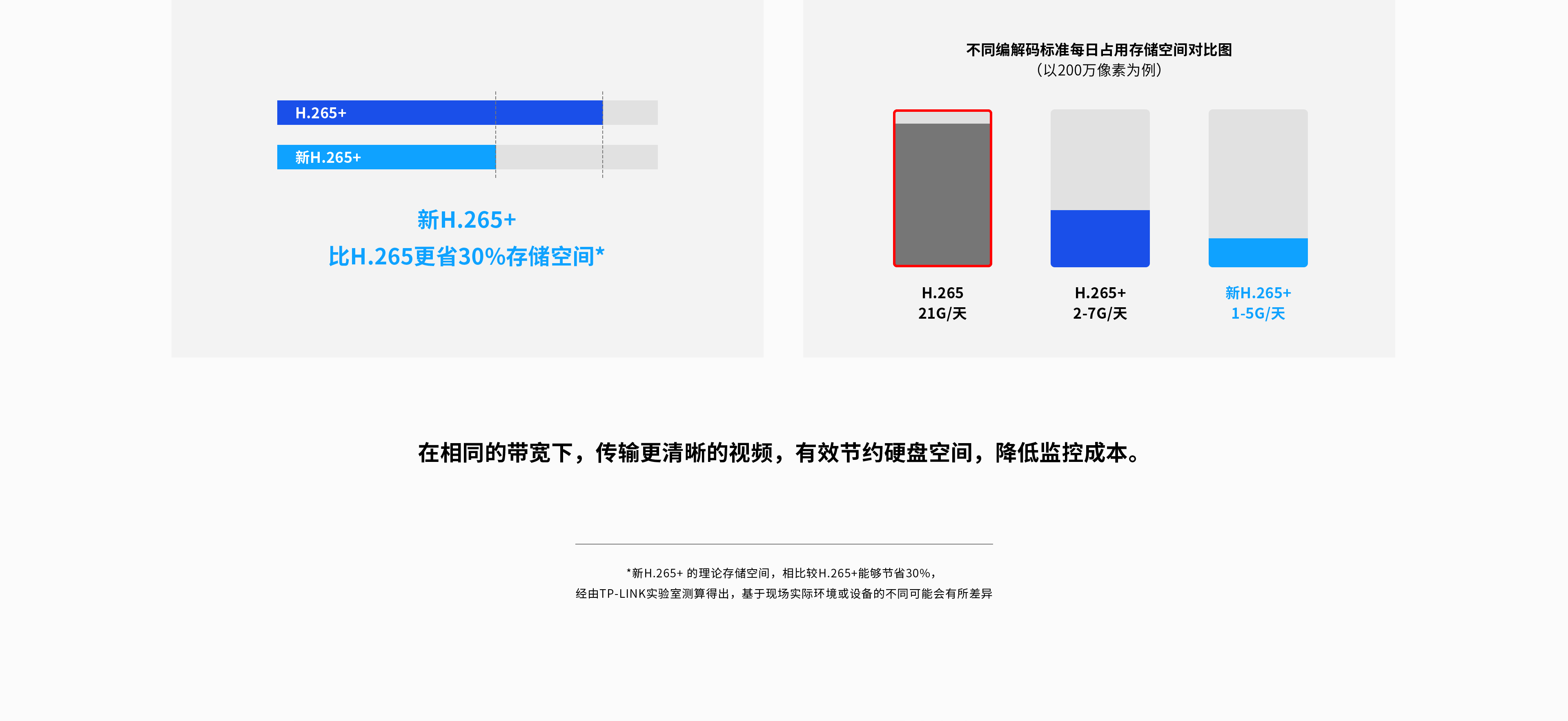 • 支持TP-SRC码控算法(新H.265+),在智能编码基础上可再节省30%存储空间