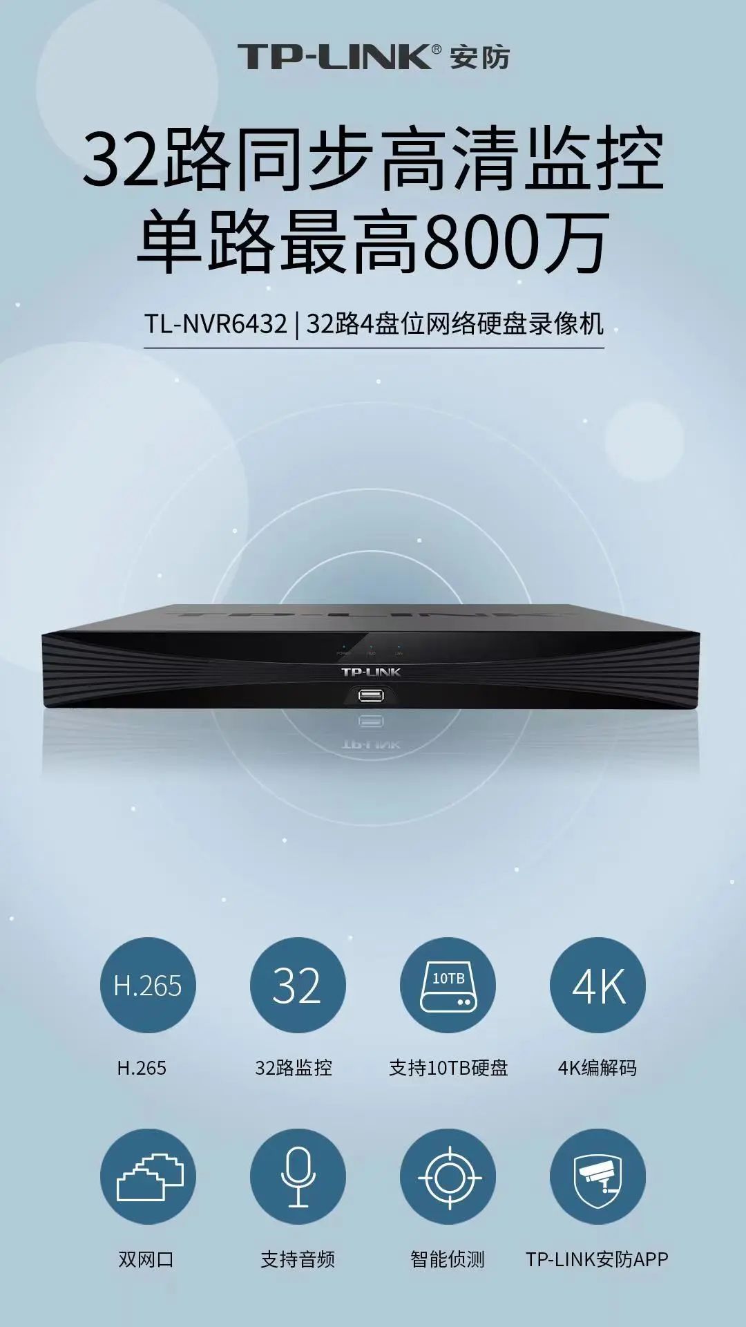 TL-NVR6432 V3.0除了AI亮点功能,也支持TP-LINK云录像机的全部实用功能,易调试、云托管、全兼容,不仅规格高,功能更是配置完备,典型的开局效率高,客户使用体验好。