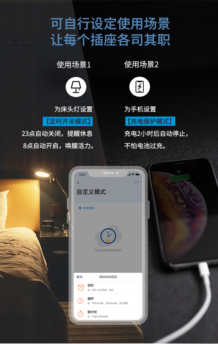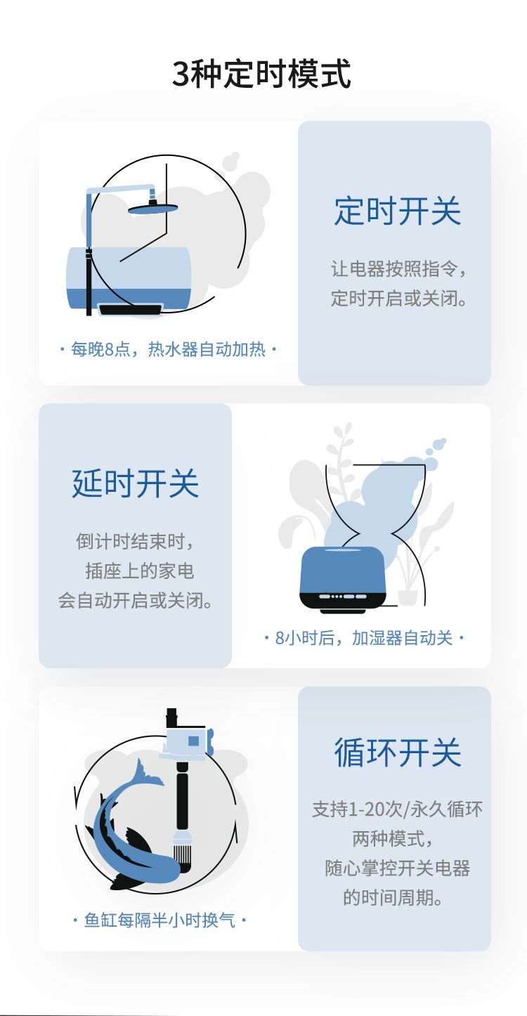 • 支持定时开关、联动其他智能家居设备